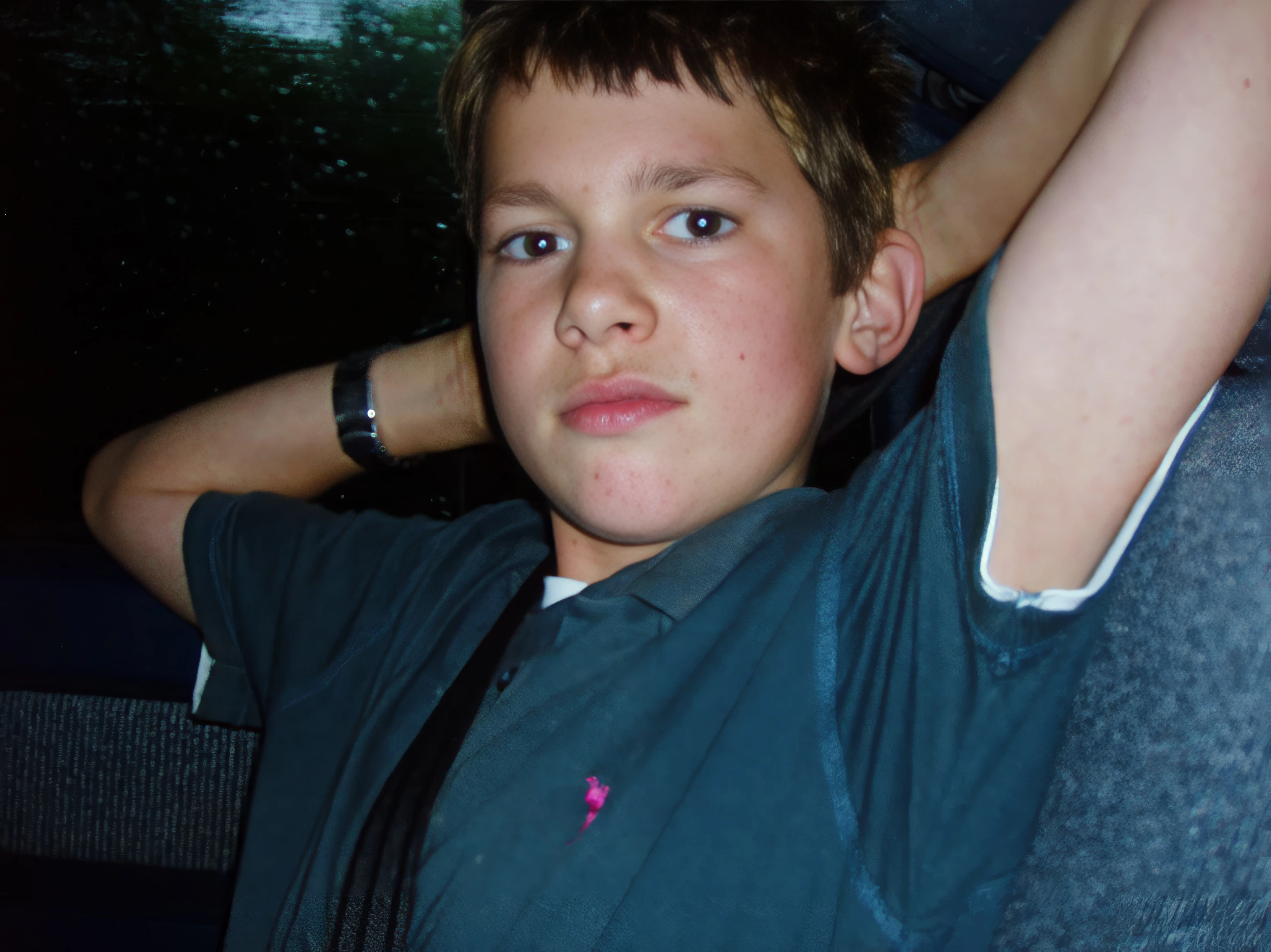 Ash snaps away in the back of Michael's car, homeward from Black Forest Lodge.