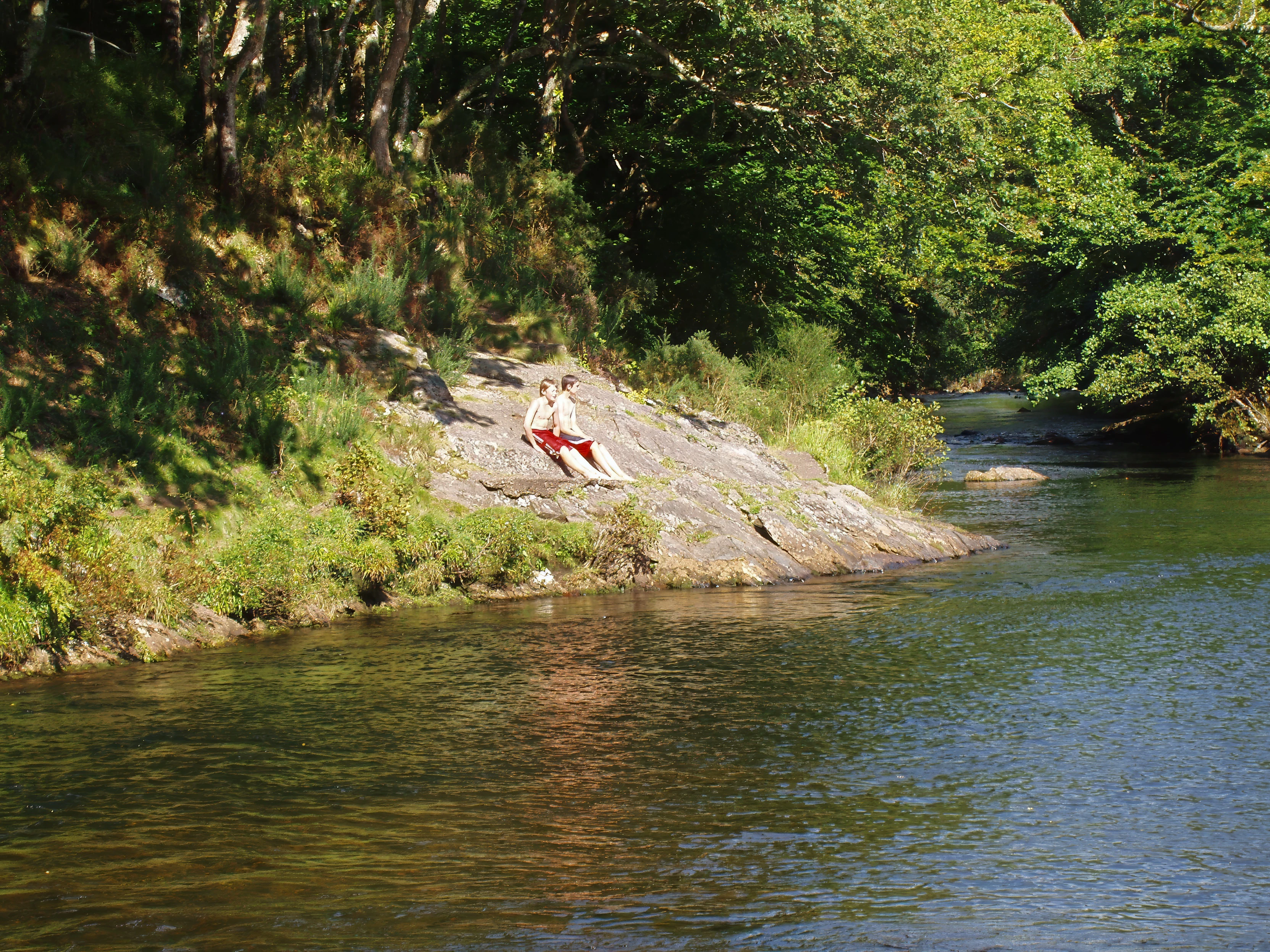 Sam and Freddie catch their breath between river jumps.