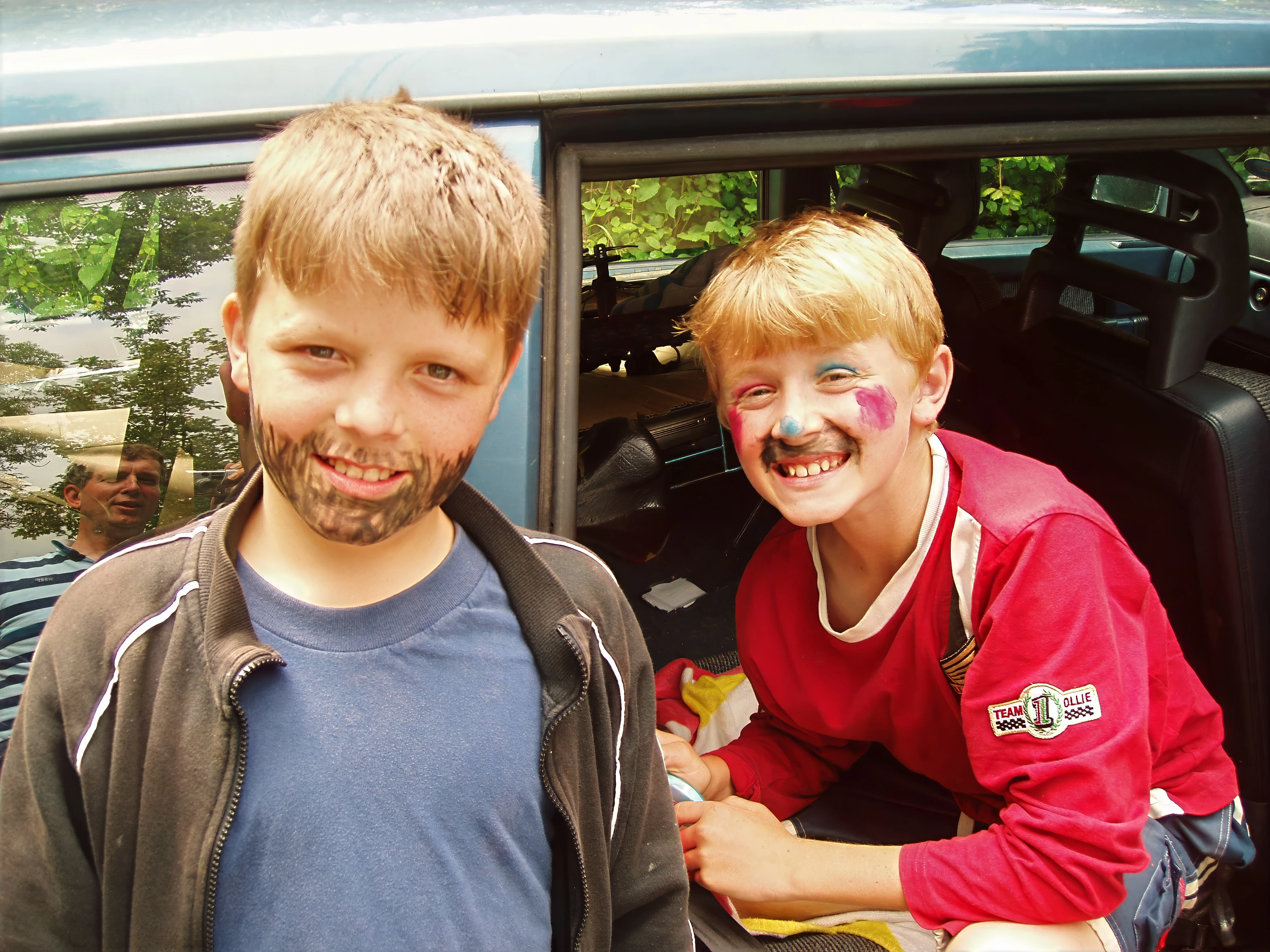 Ashley and Olly show off homeward-journey face paints back in Buckfastleigh.