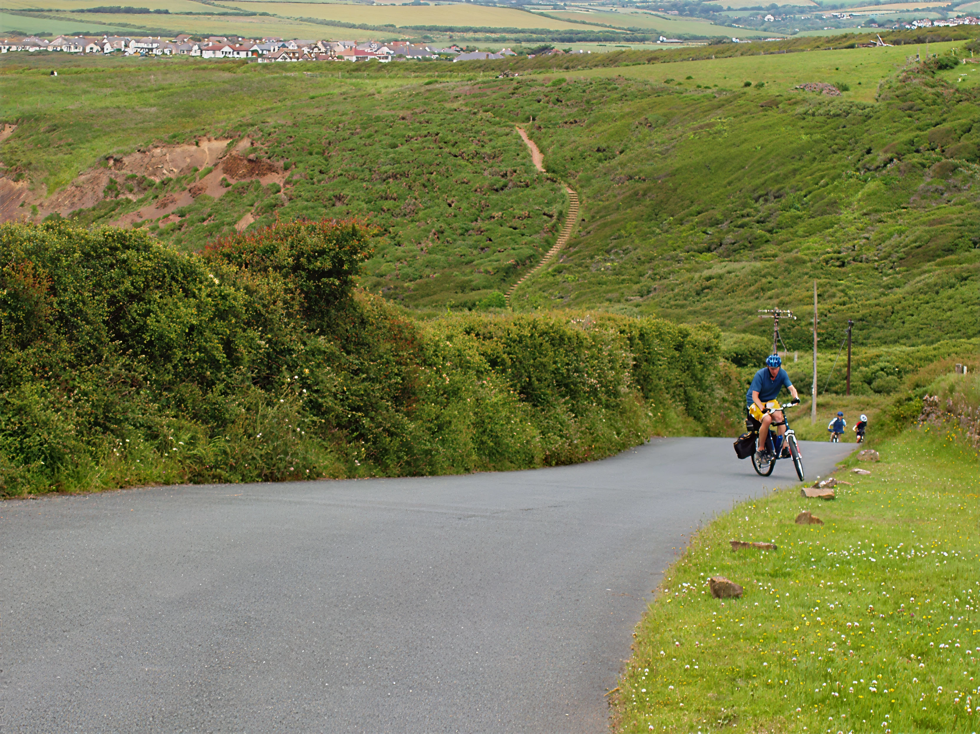 The next climb at Penhalt Cliff, Widemouth Bay in the distance.