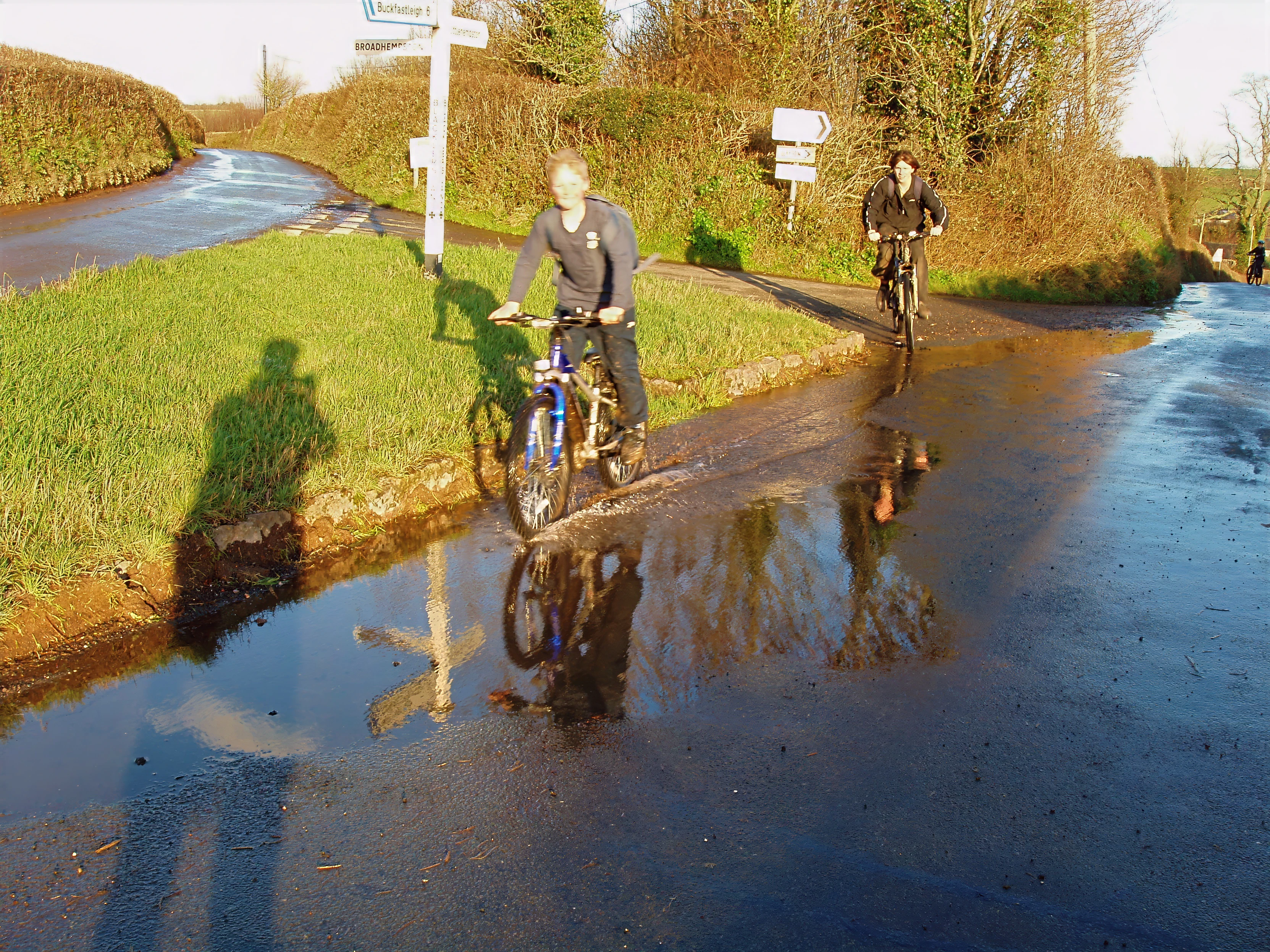 Approaching Staverton after Alex-led puddle-splashing delays.
