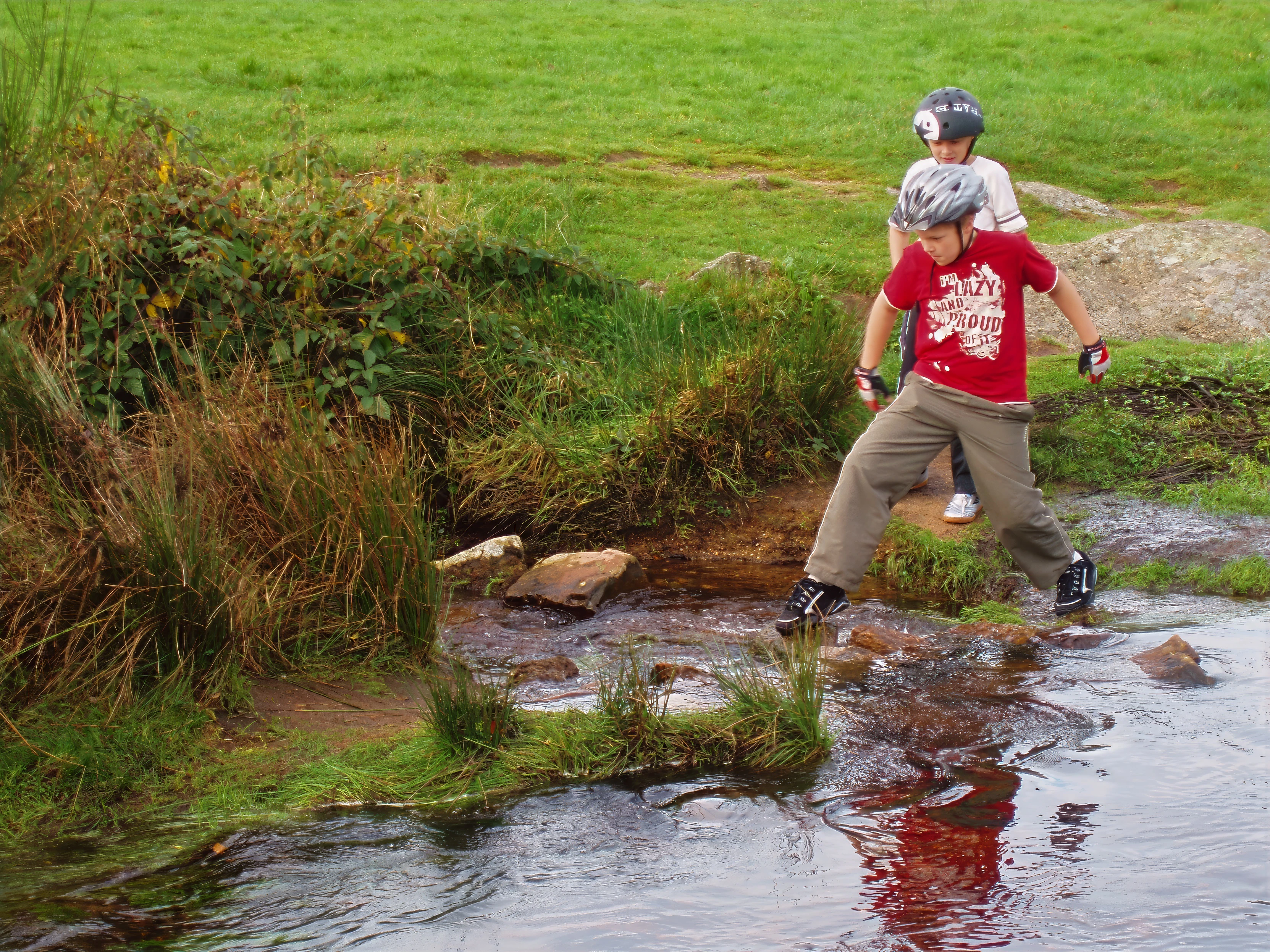 Ryan and Glen messing about on the East Dart River at Postbridge.