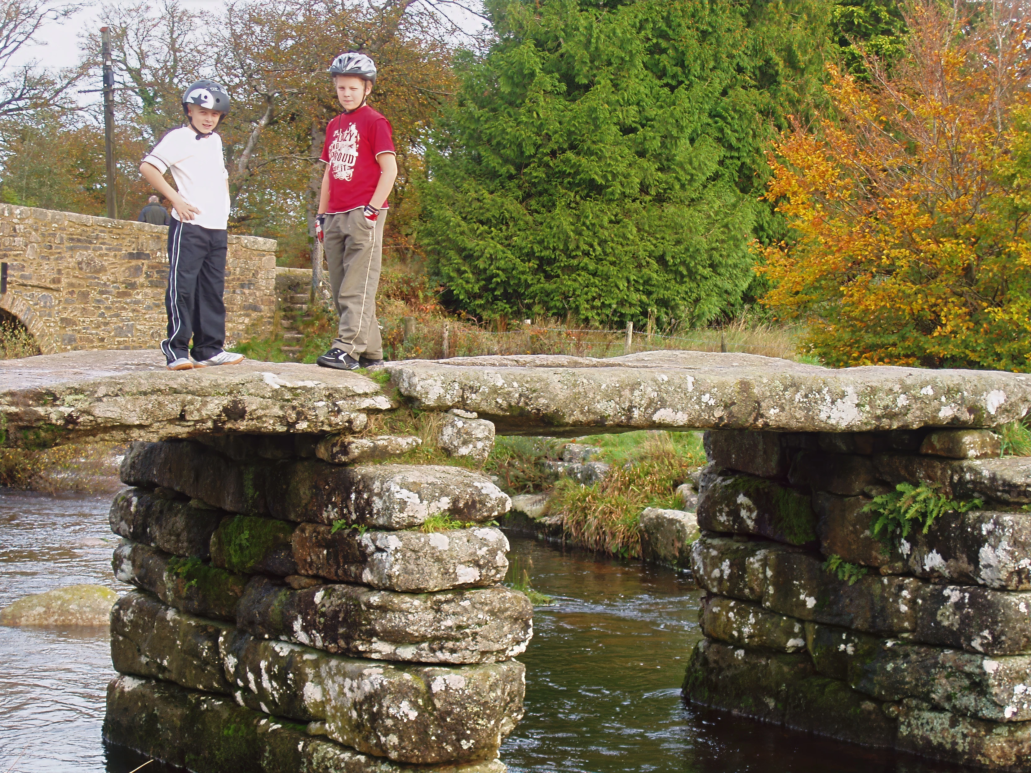 Glen and Ryan on the Postbridge clapper bridge.