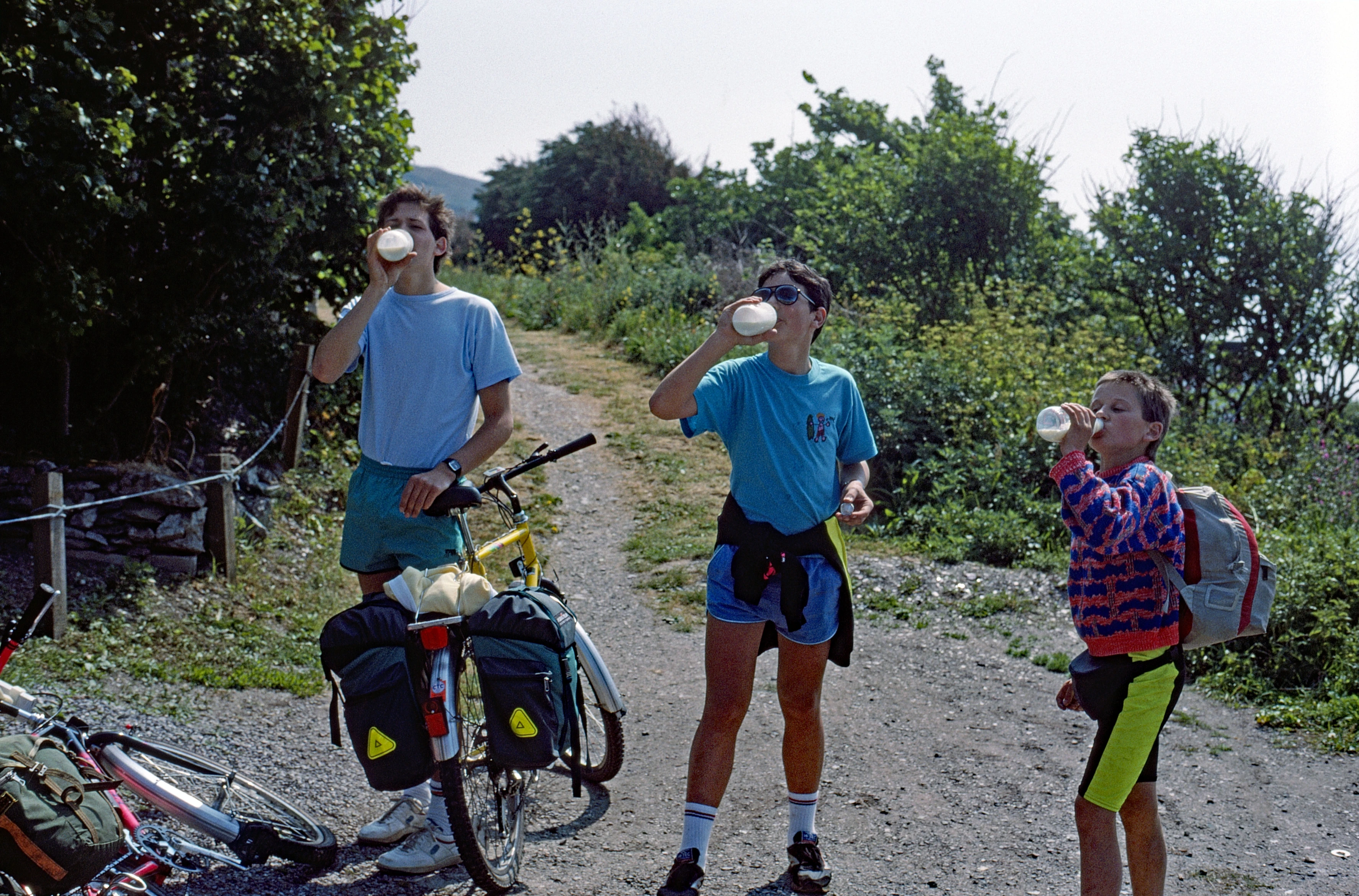 Paul, Matthew and Tao downing fresh milk near Portwrinkle.