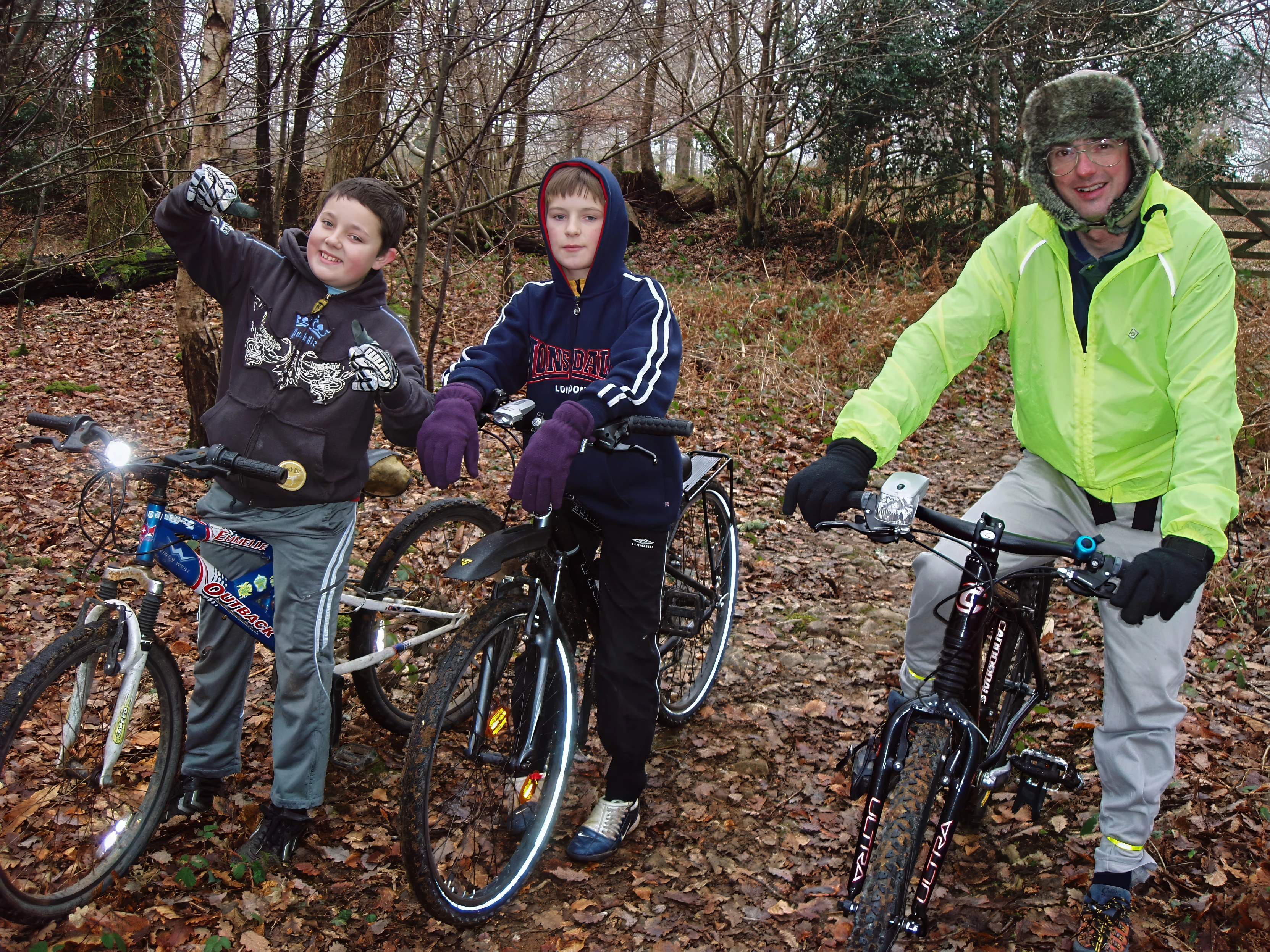 Scott, Dennis and John ready for the downhill run through Hembury Woods.