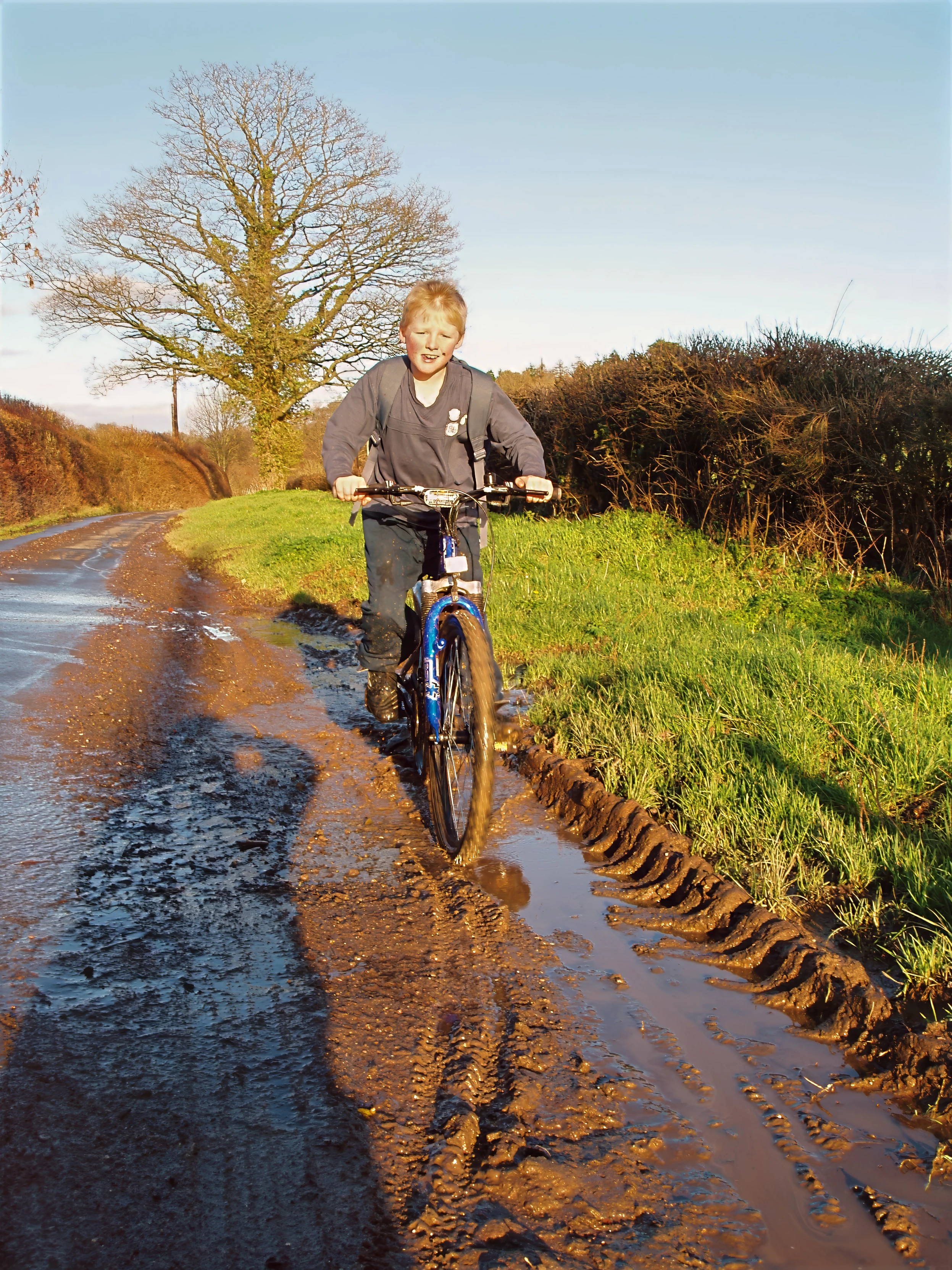 Alex, of course, demonstrates his love of muddy puddles near Staverton.