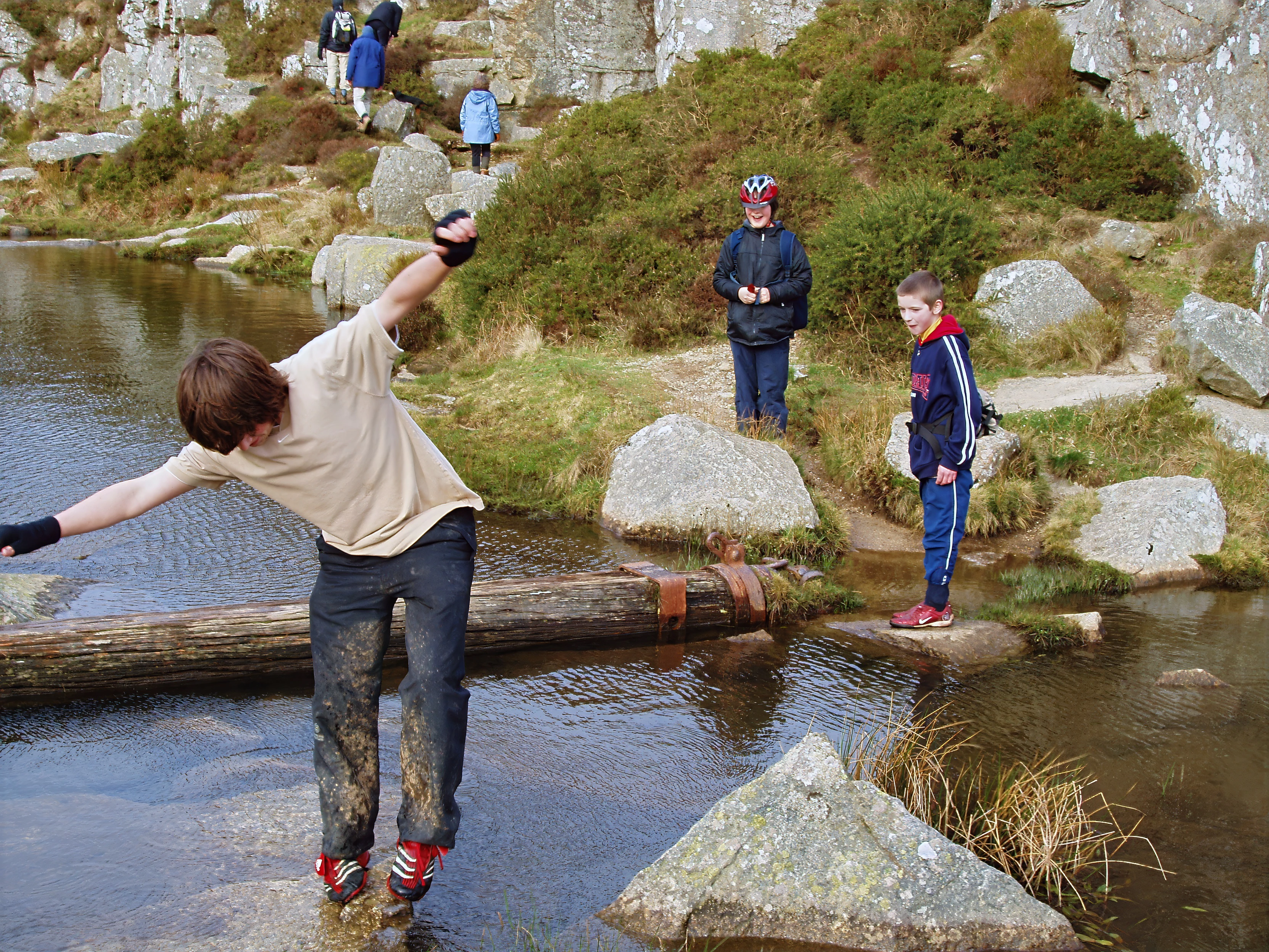 Matt's precarious quarry gymnastics, watched by Zac and Dennis.