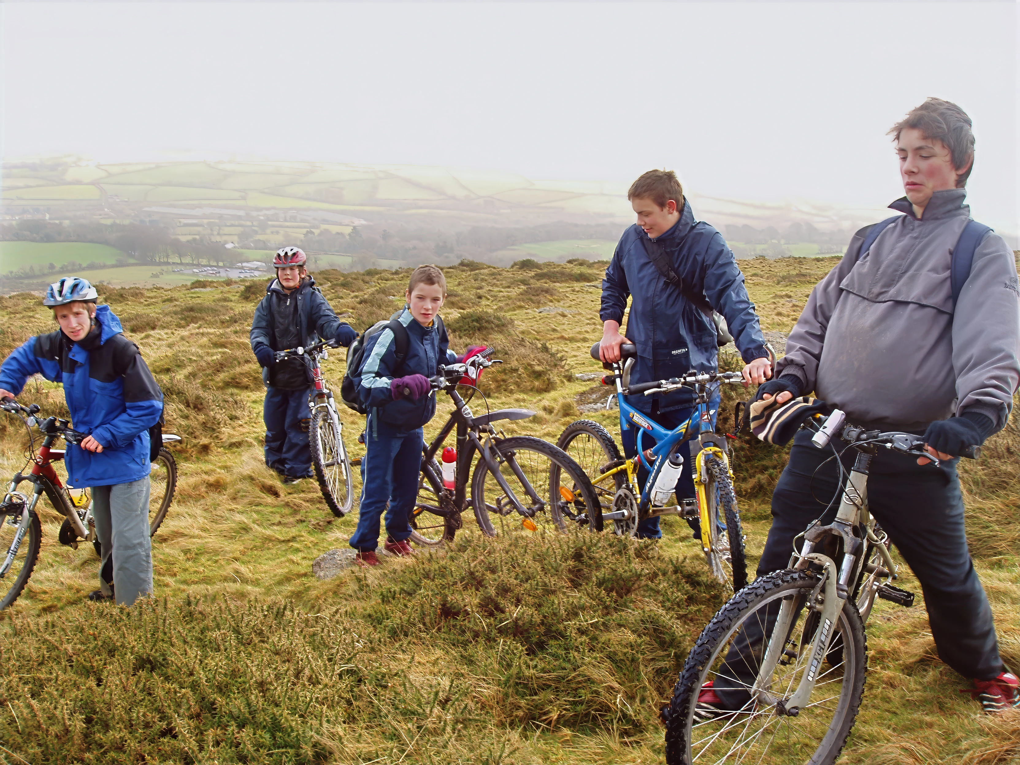 Finally atop a very windy Ugborough Beacon.