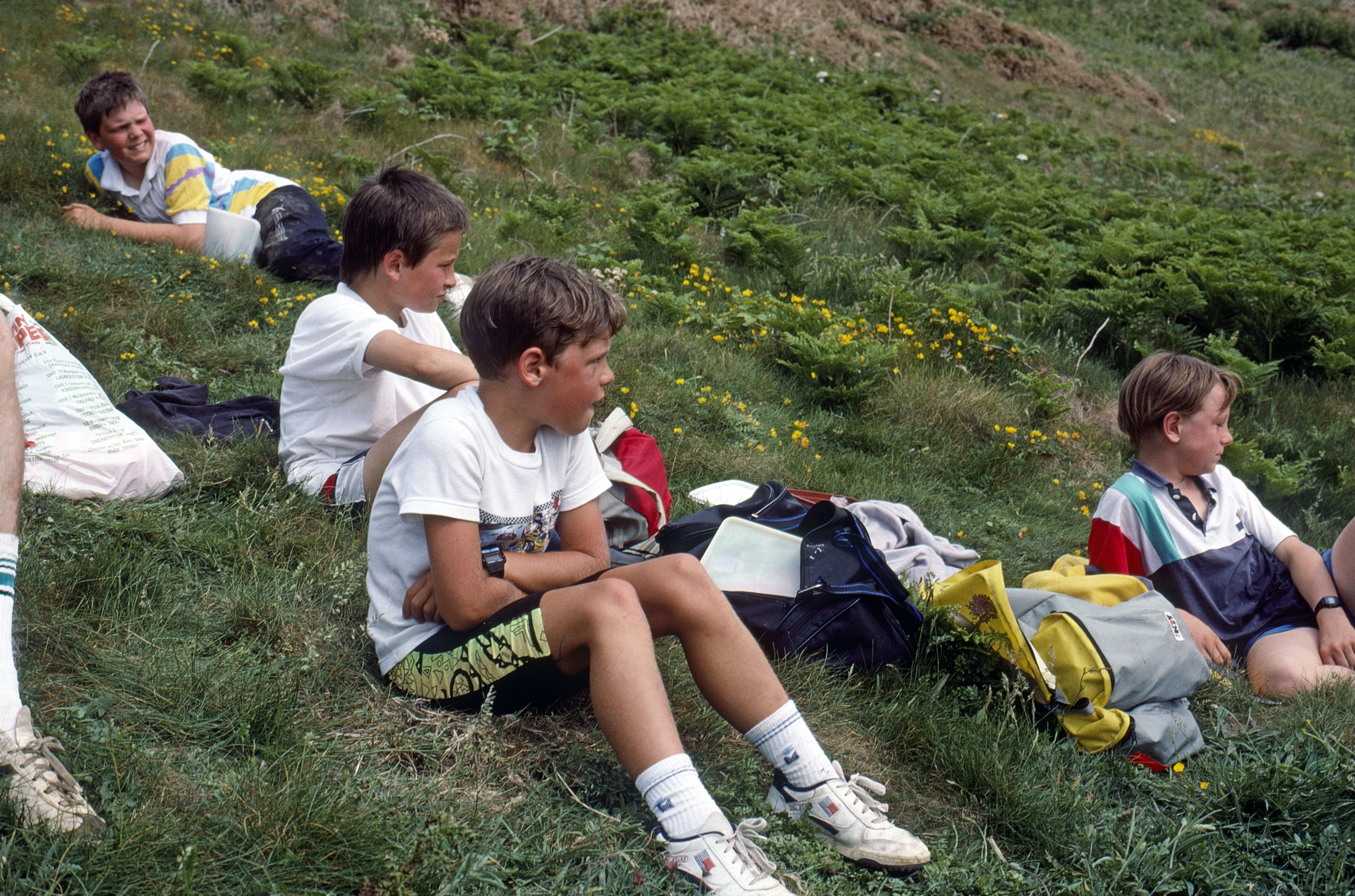Neil, Tao, Eliot and Martin Rushworth enjoy lunch overlooking Elender Cove.