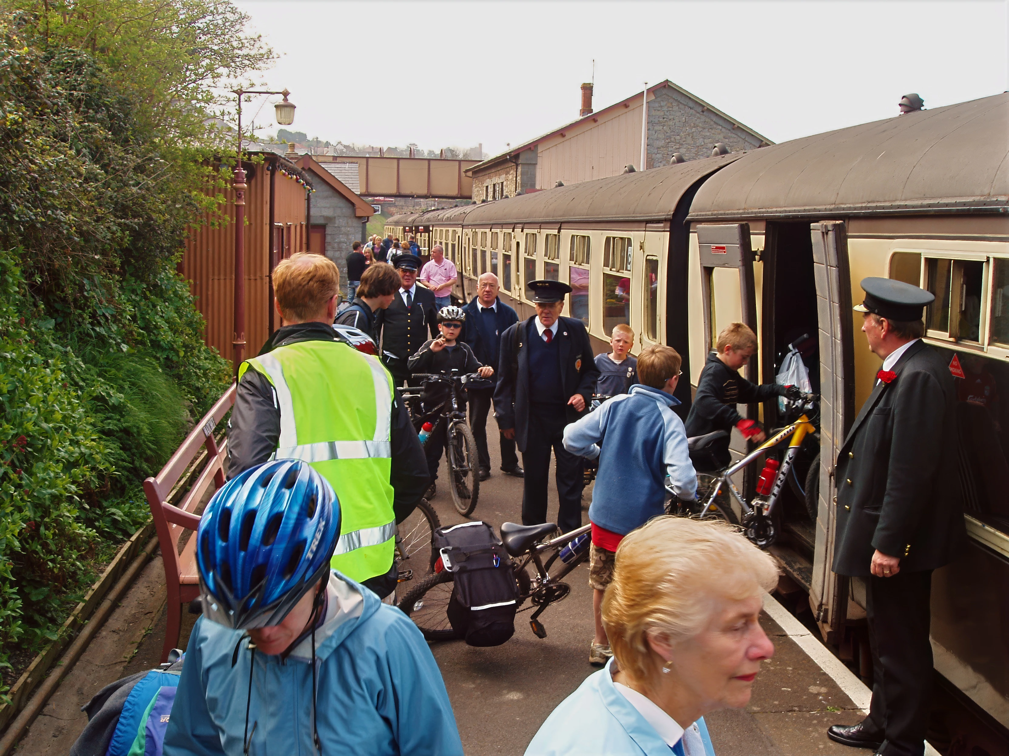Boarding the steam train at Watchet station.