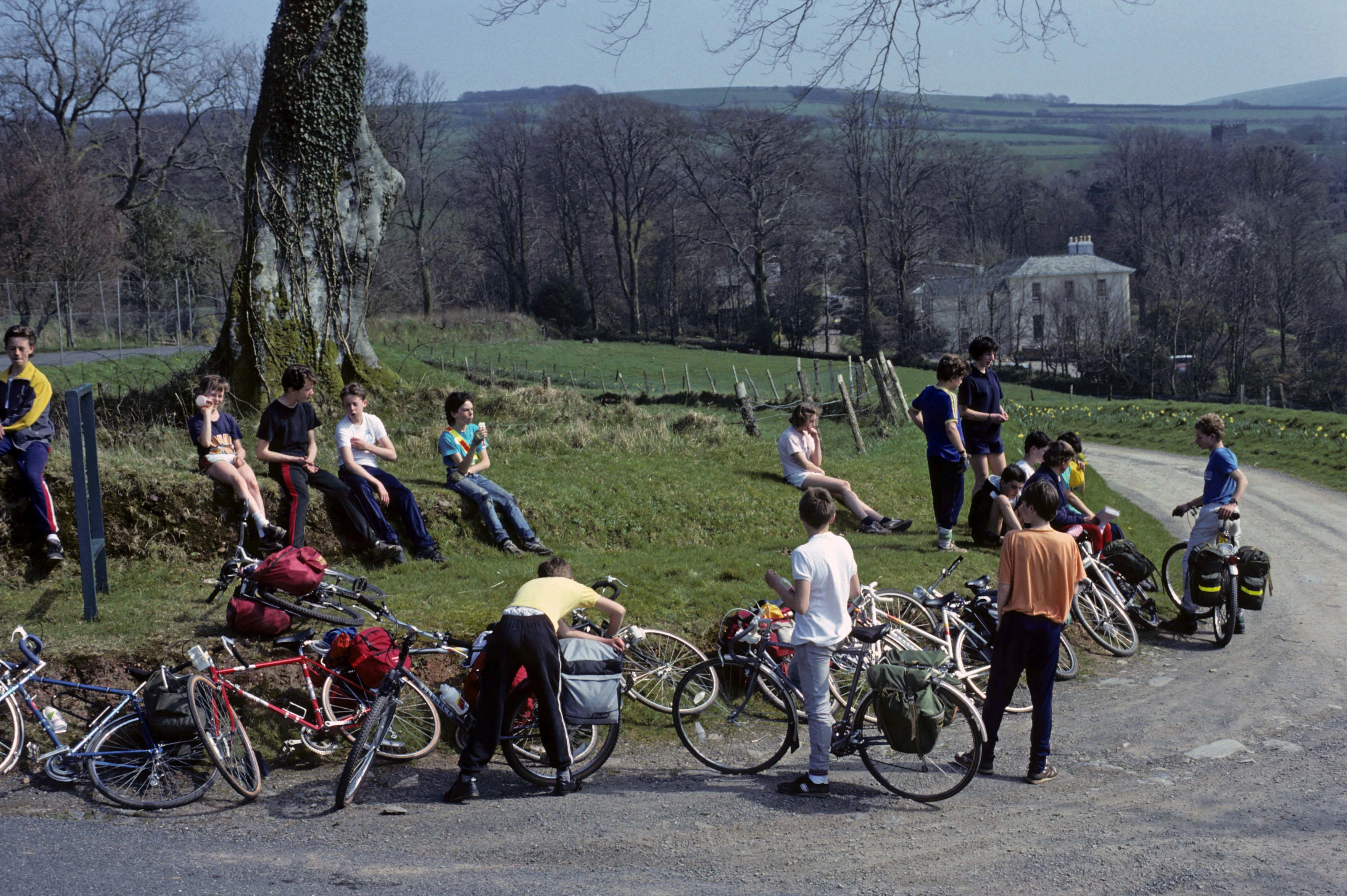 Well-earned breather after the Parracombe climb; near the top of Parracombe Lane, Heddon Hall and St Petrock’s beyond.