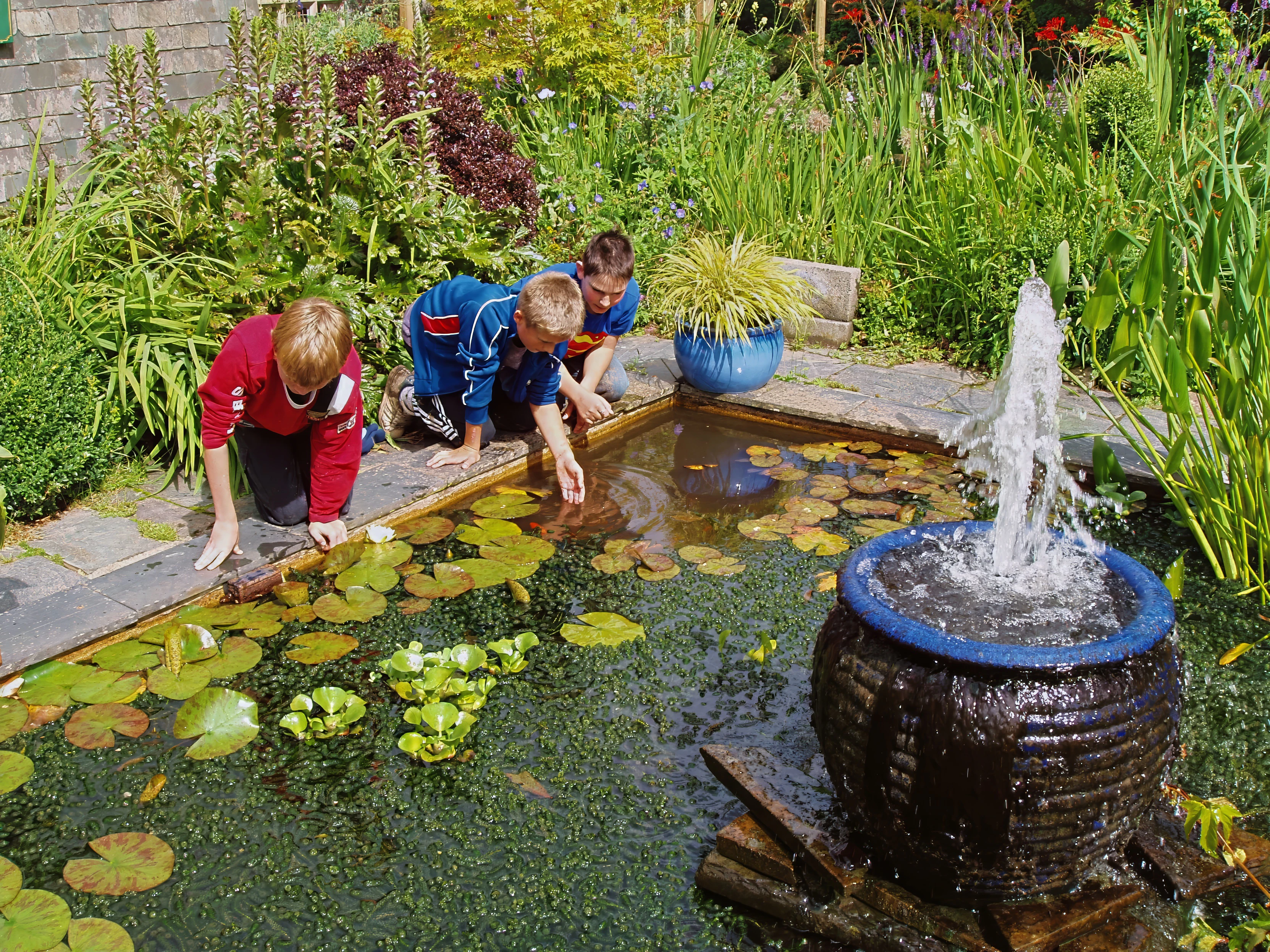 Olly, Sam and Zac go 'fishing' in the Hill House Nursery pond.