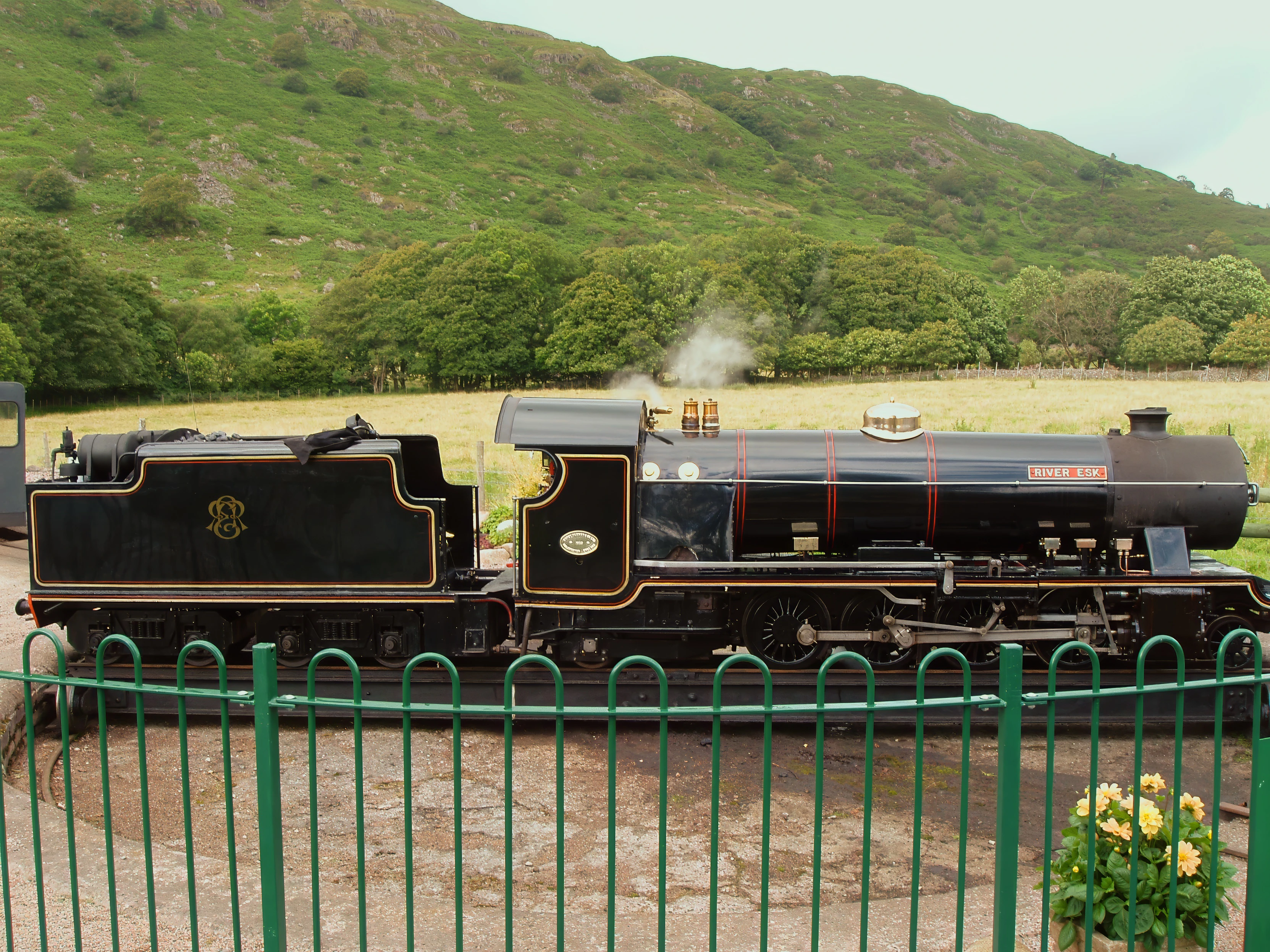 Miniature steam engine at Dalegarth, rotated by hand on the turntable.