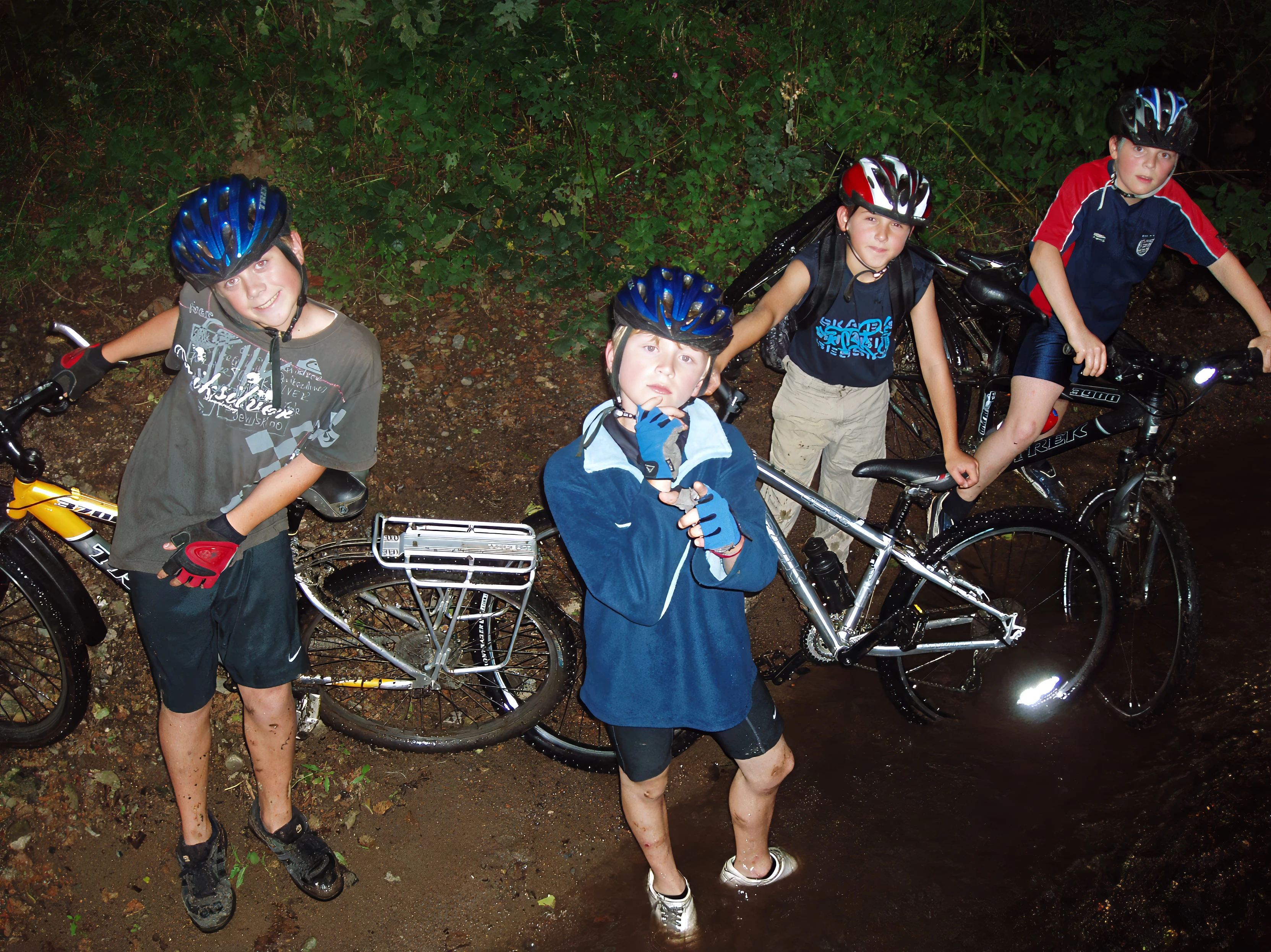 Sam, Olly, Tom and Ashley by the river at the end of the Burchetts Wood track.