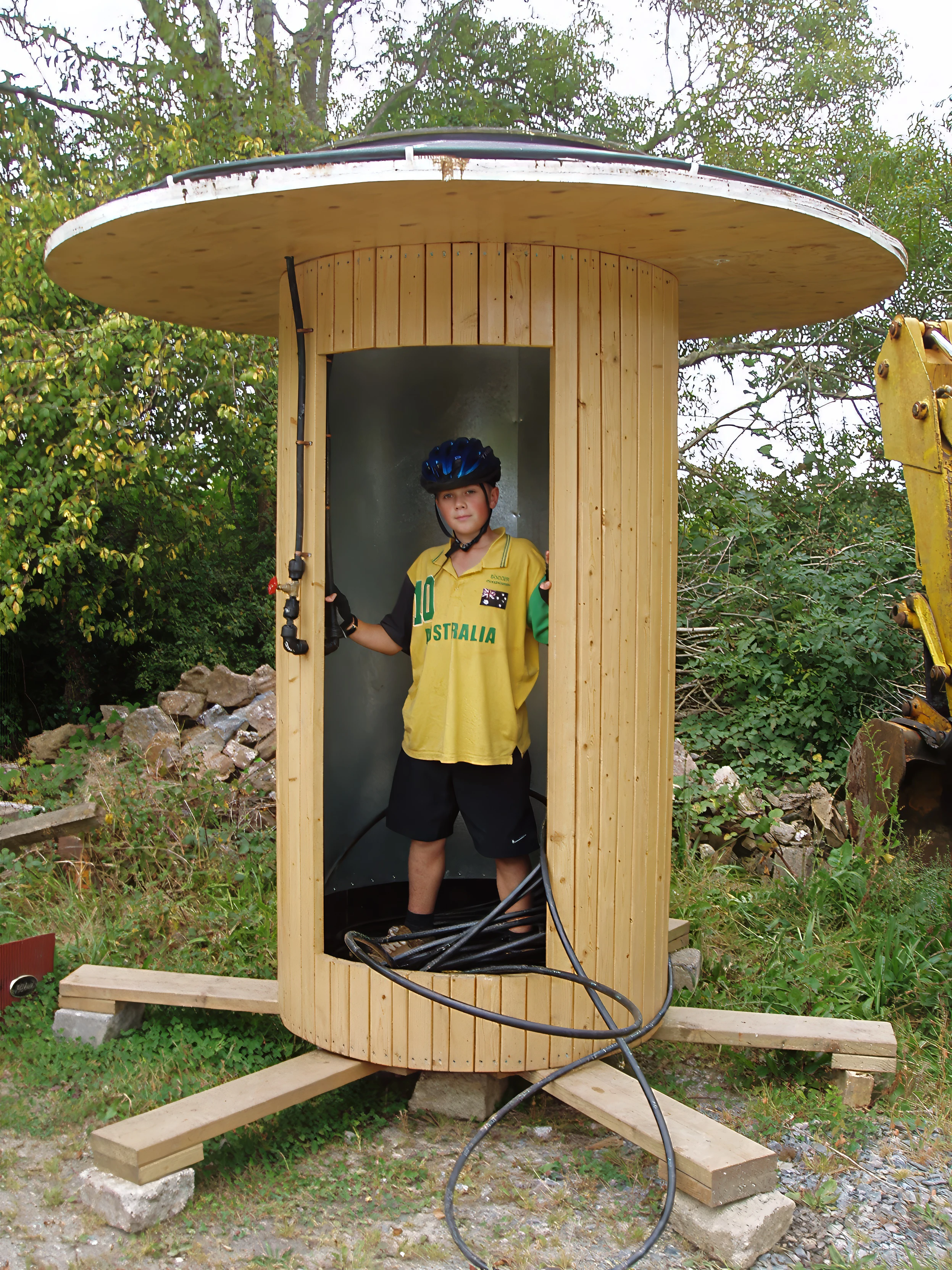Sam demonstrates the mysterious solar-heated decontamination chamber.