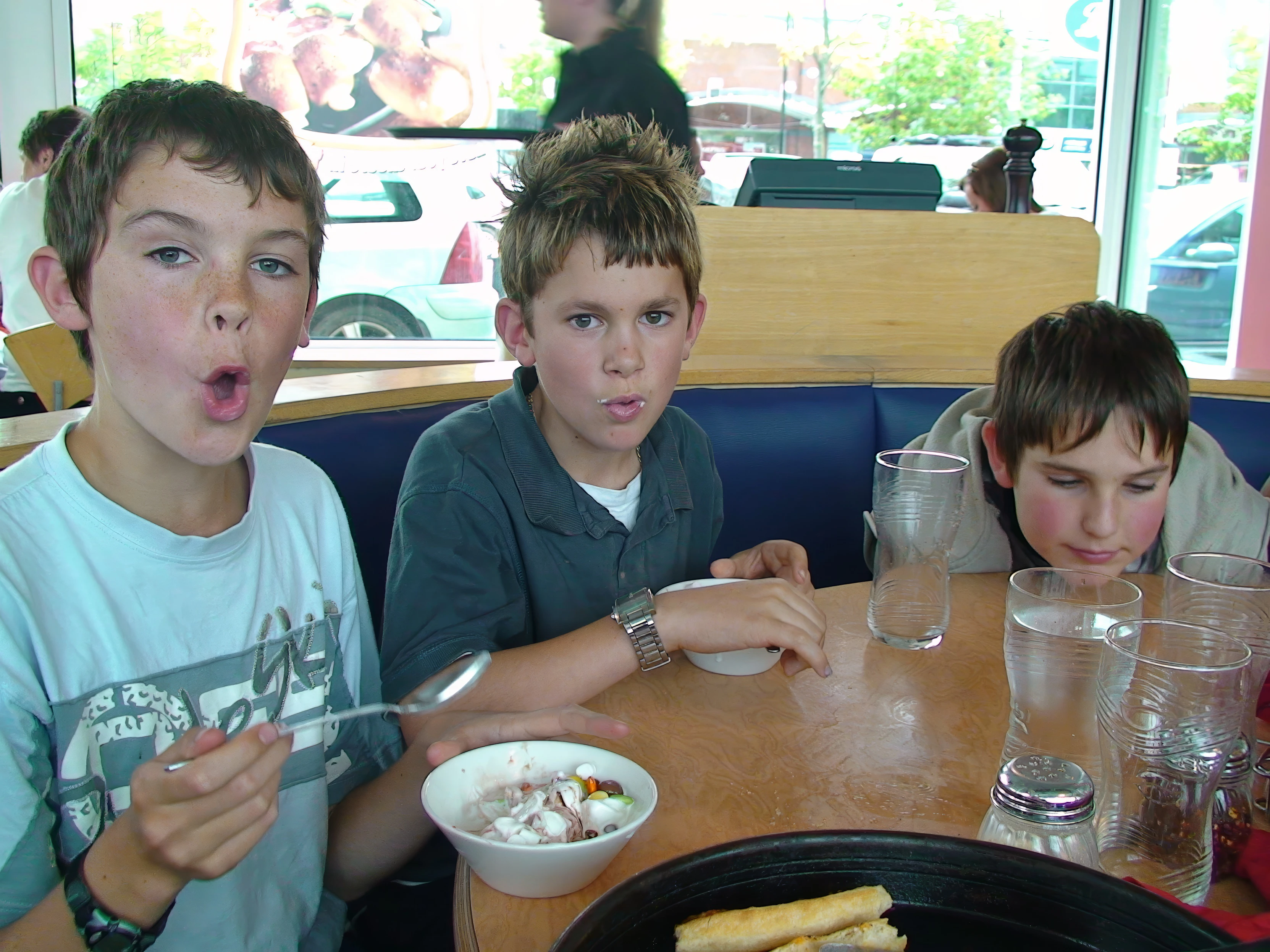 Fred, Reuben and Zac enjoy Ice Cream Factories at Pizza Hut.