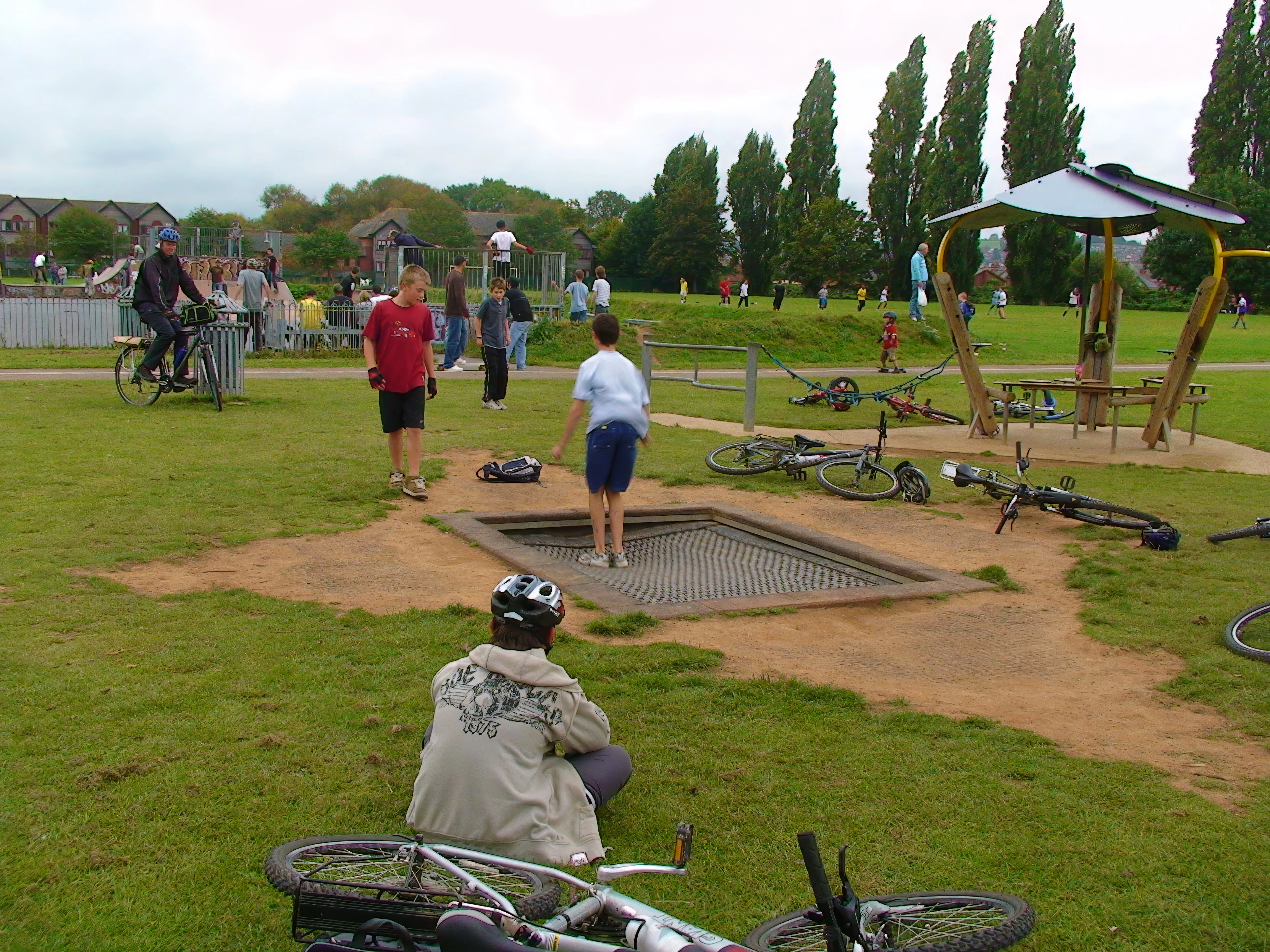 Fred and the youngsters enjoy the trampoline in Exeter park.