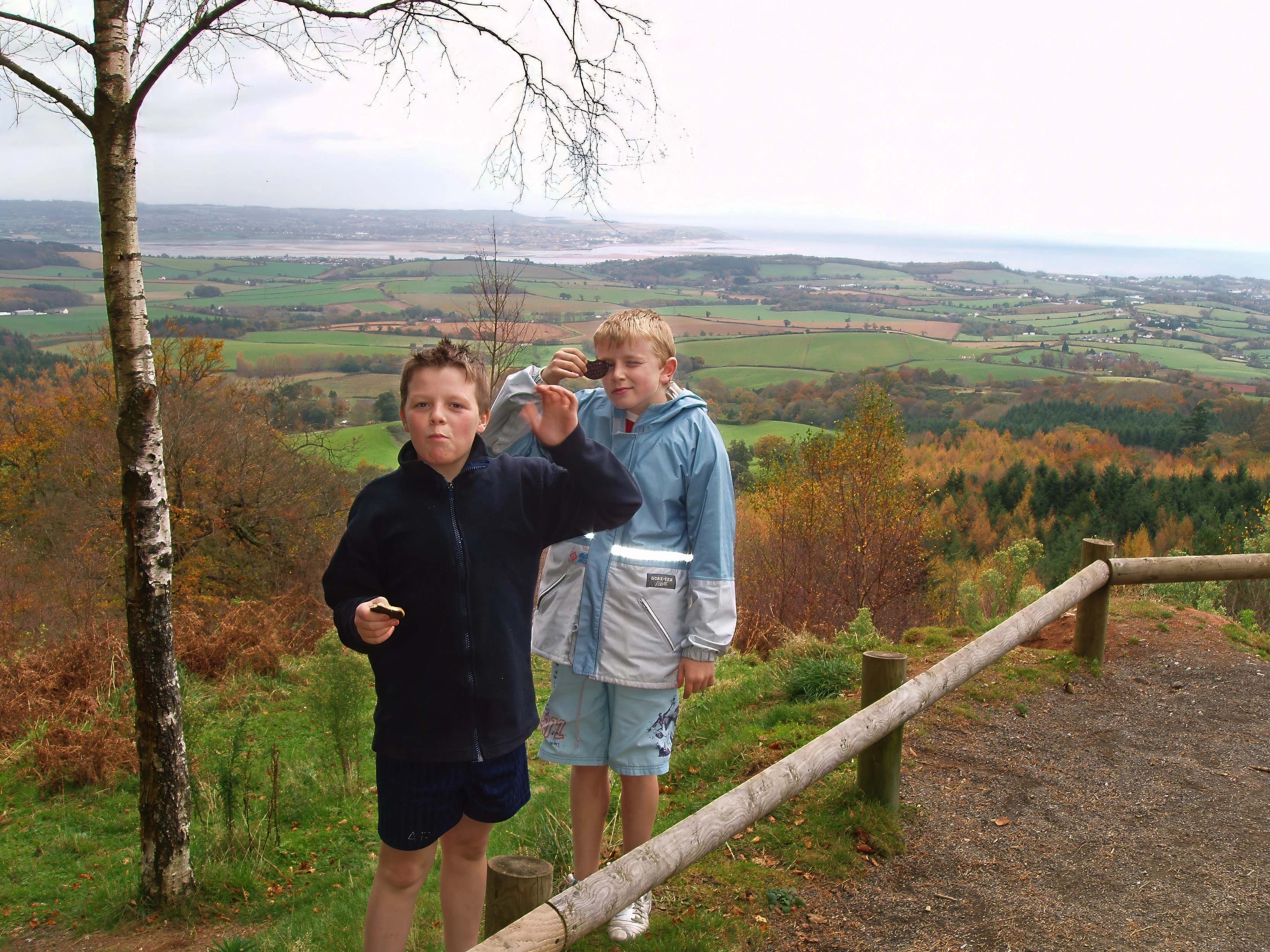 Ashley and Olly at Mamhead Obelisk, with views towards the Exe Estuary.