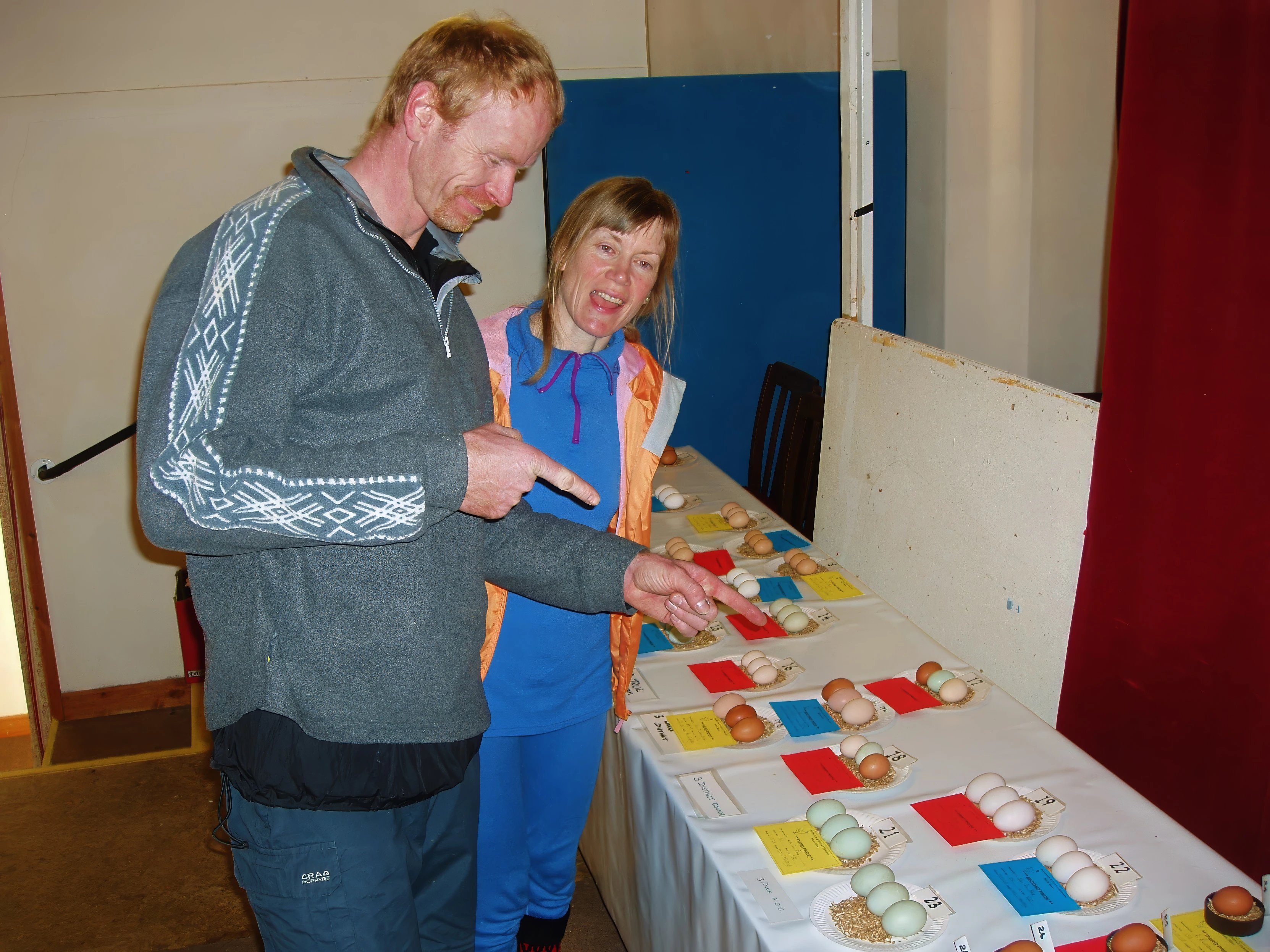 Charles and Heidi admire the egg display at the Rattery Poultry Show.