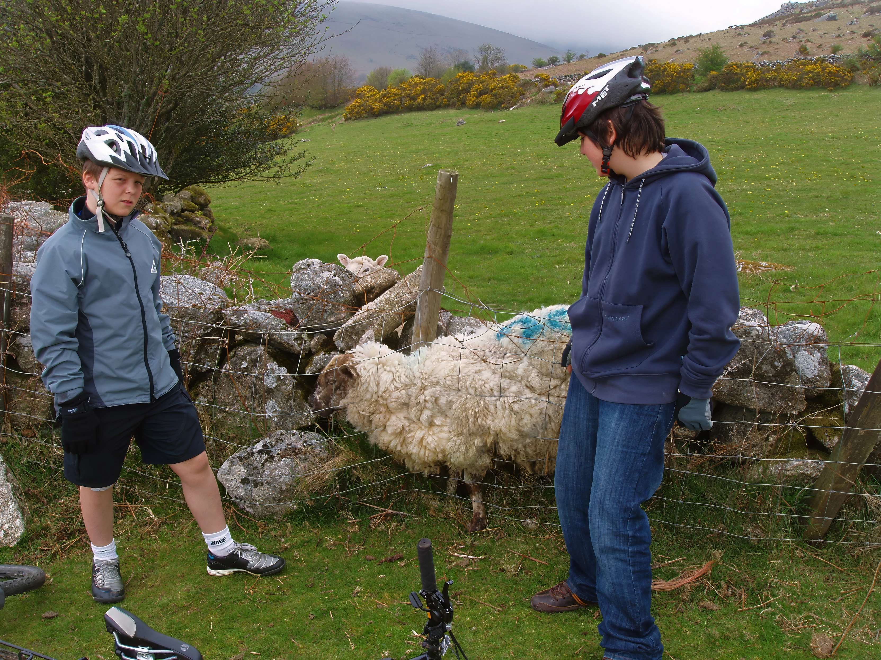 Ash and Zac try to free the trapped sheep near Bonehill car park
