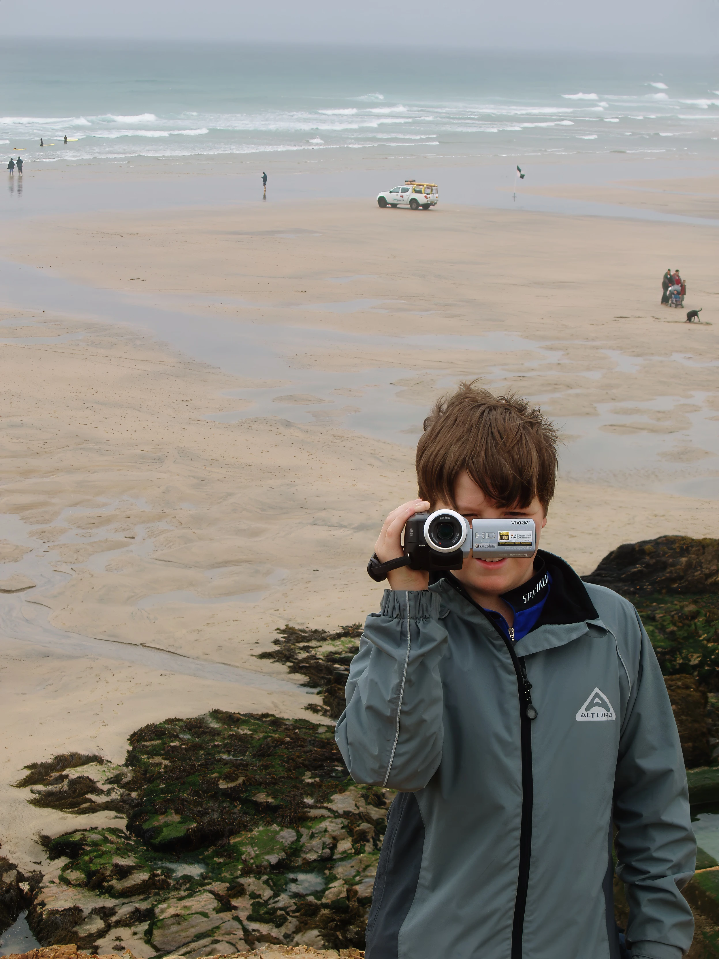 Ash tries to film Michael on Chapel Rock, Perranporth, but the tape runs out.