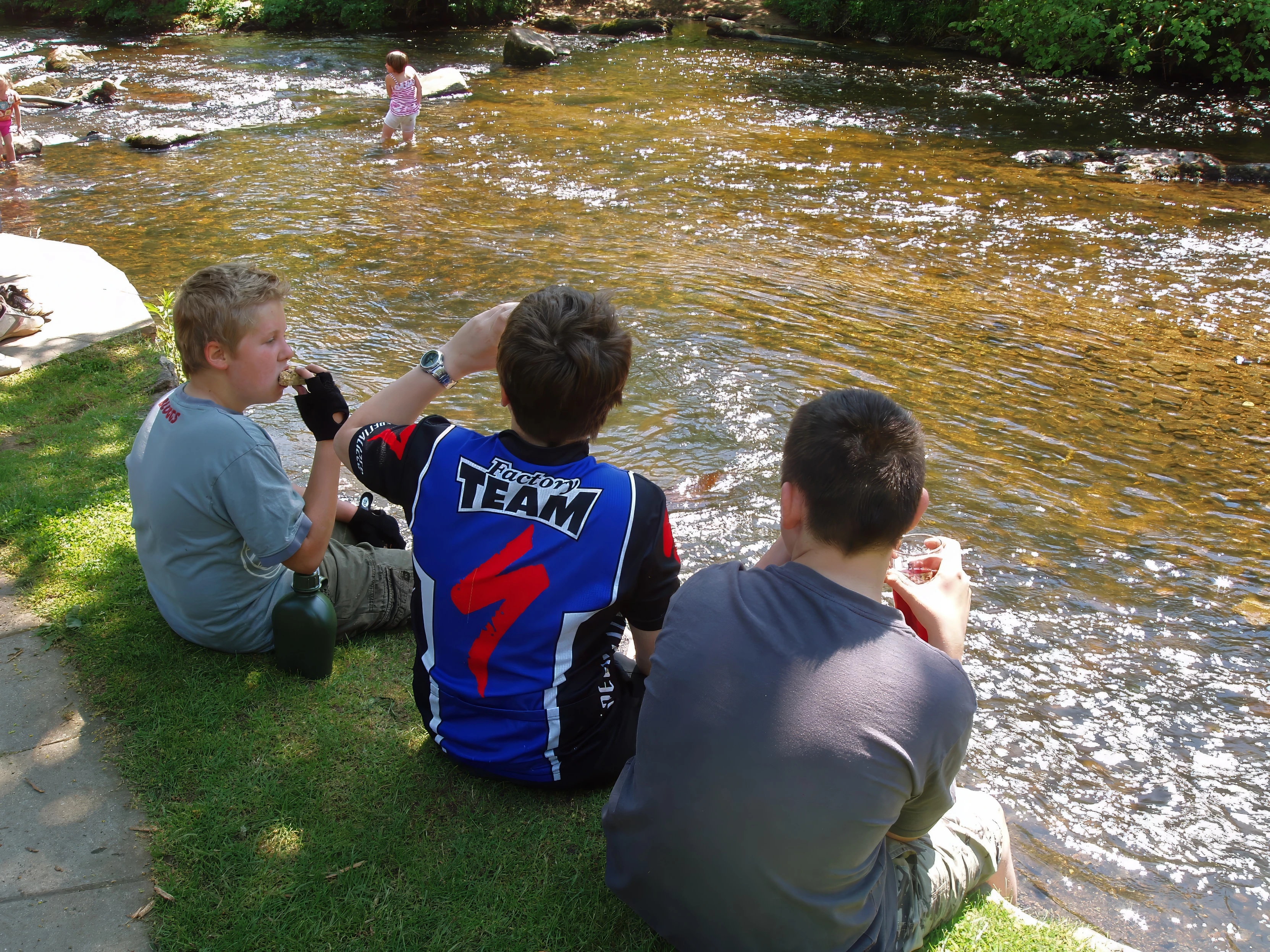 Packed lunch beside Fingle Bridge.