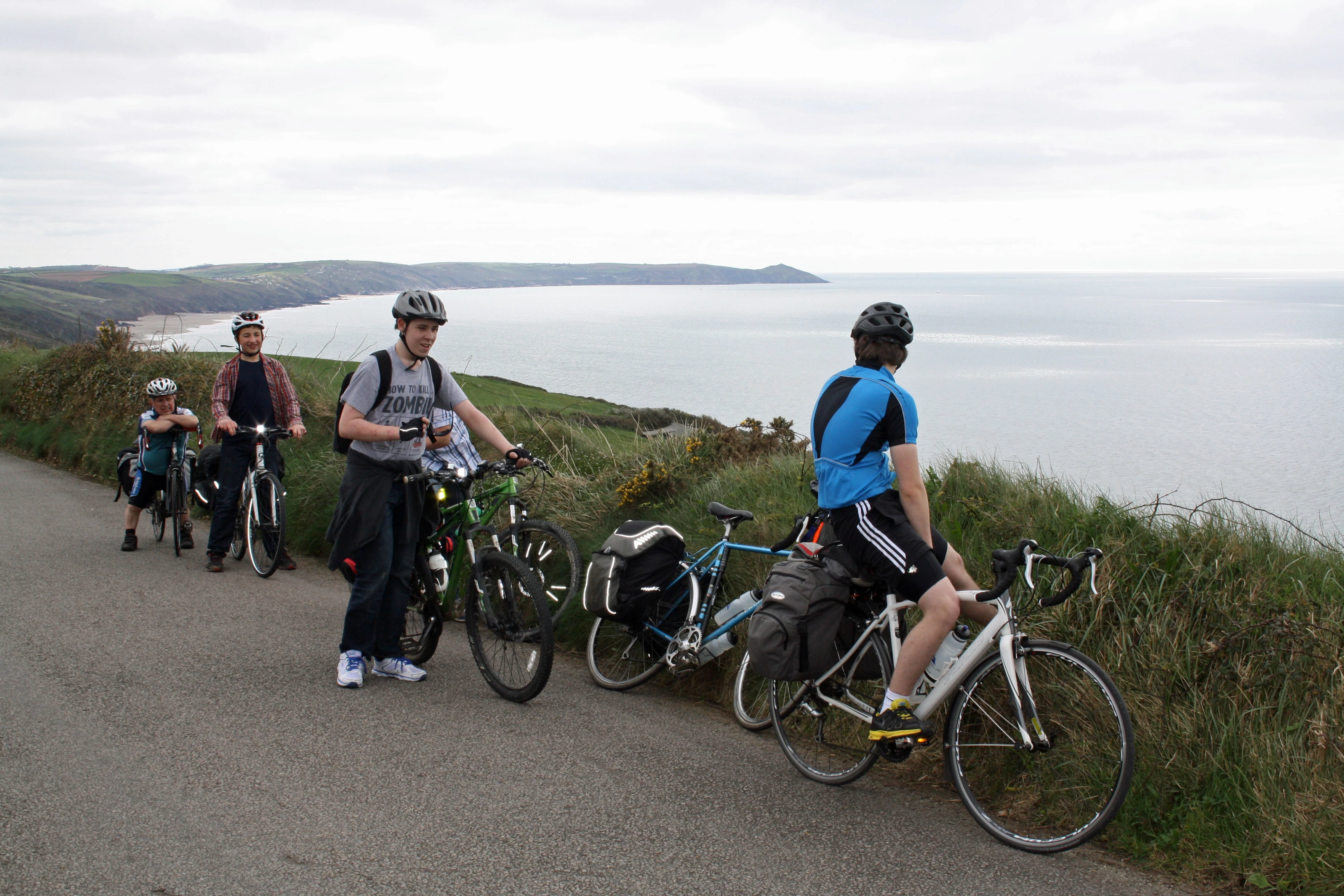 Pausing for the view on the coast road near Portwrinkle.