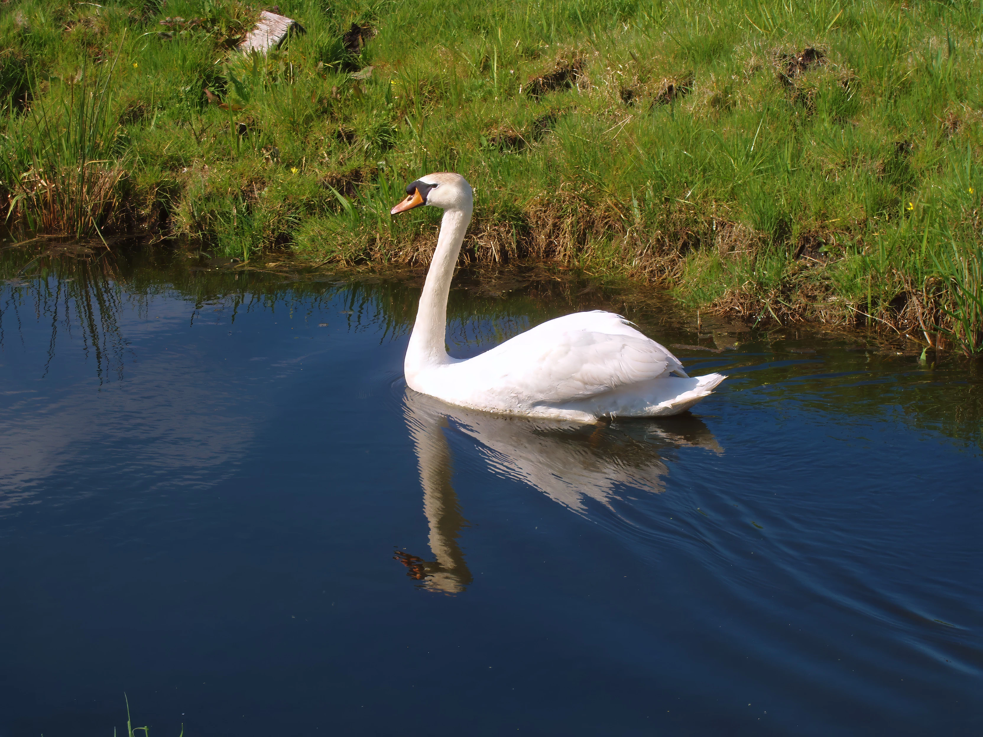 Handsome swan on the water at Beer Drove, Somerset Levels.