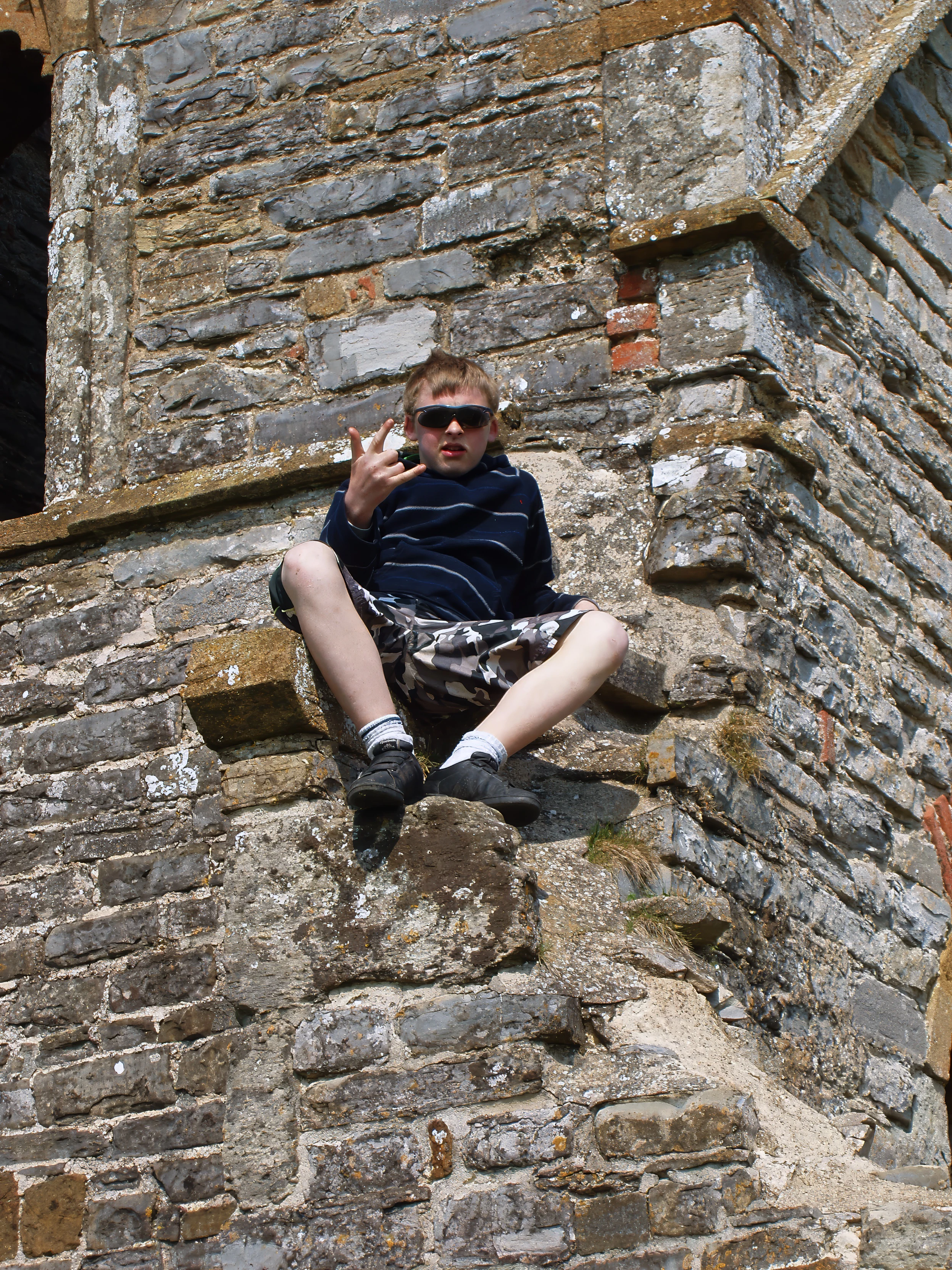Callum on the ruined church at Burrow Mump.