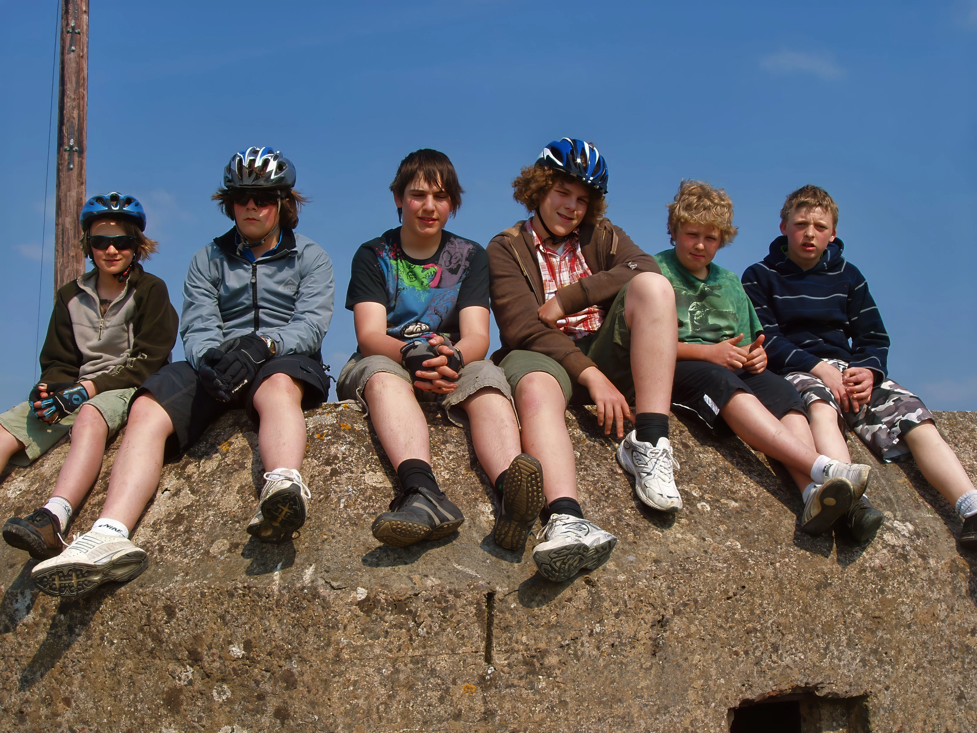 The group on a WW2 bunker at the Old Engine House, Bridgwater and Taunton Canal.