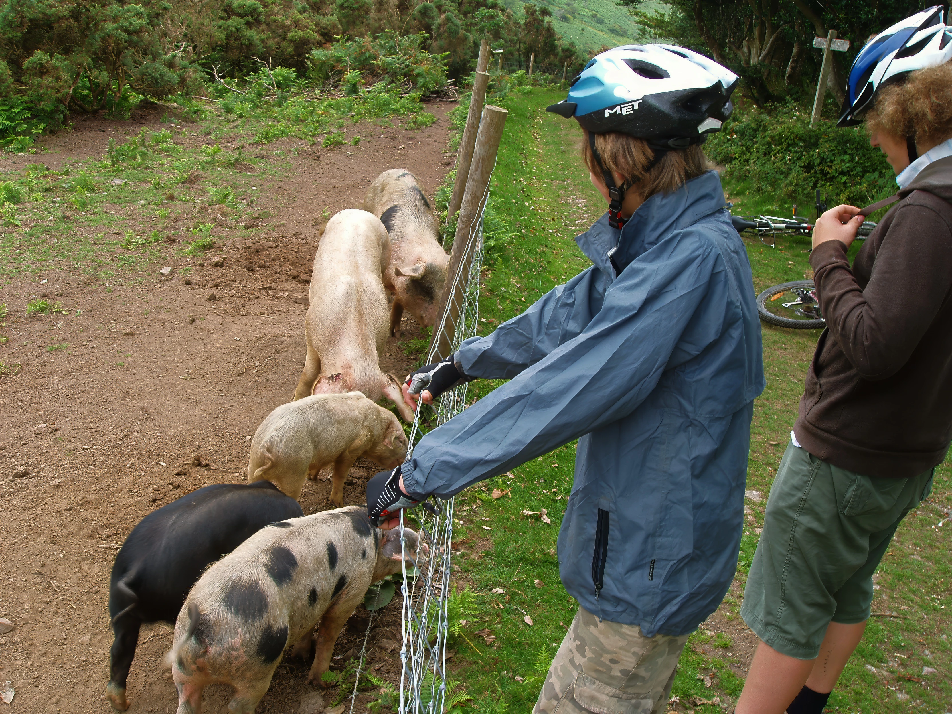 Hallam and Ryan with the piglets near Chalk Ford.