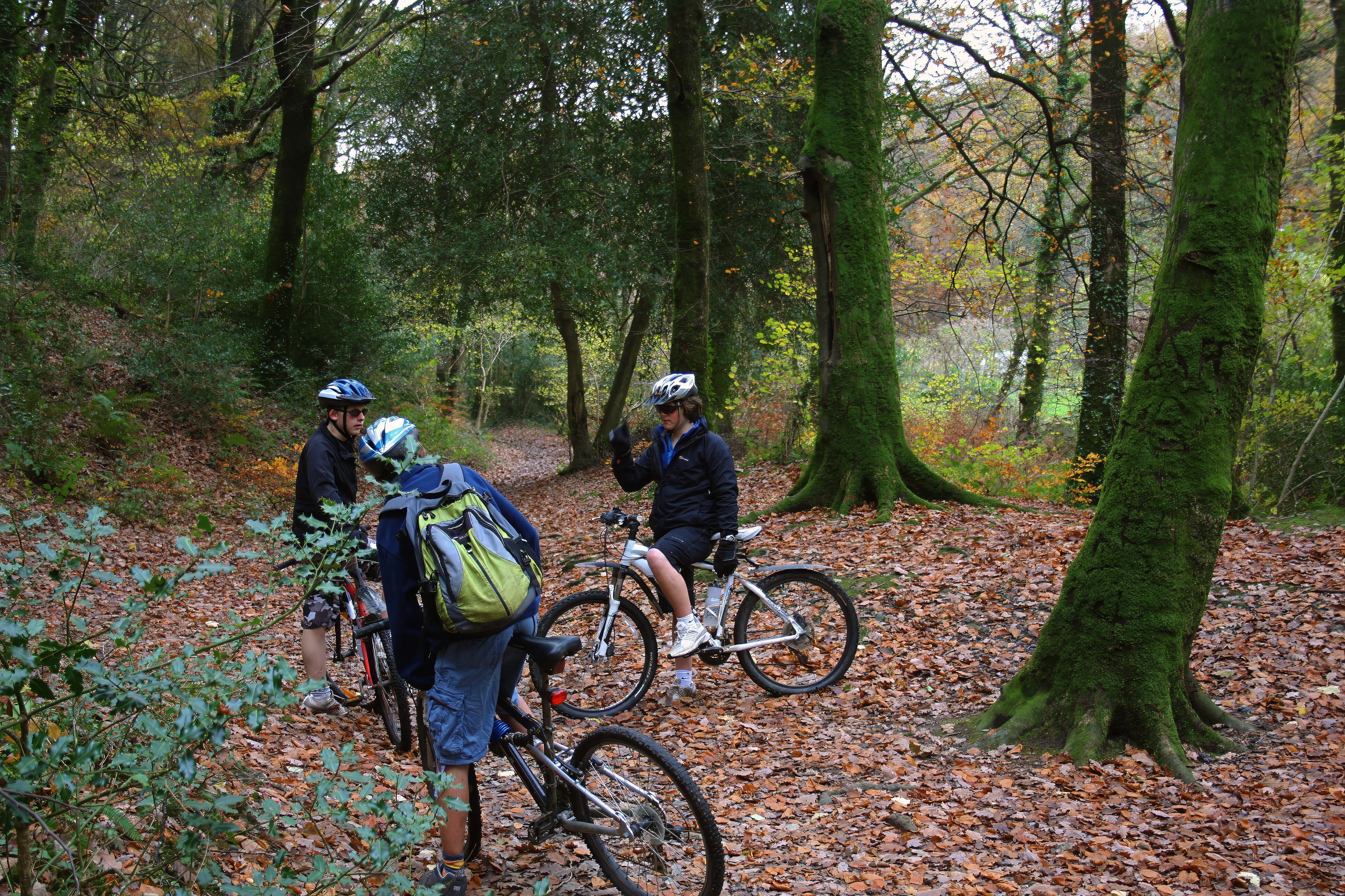 Woodland track near Belford Mill, carpeted with autumn leaves.