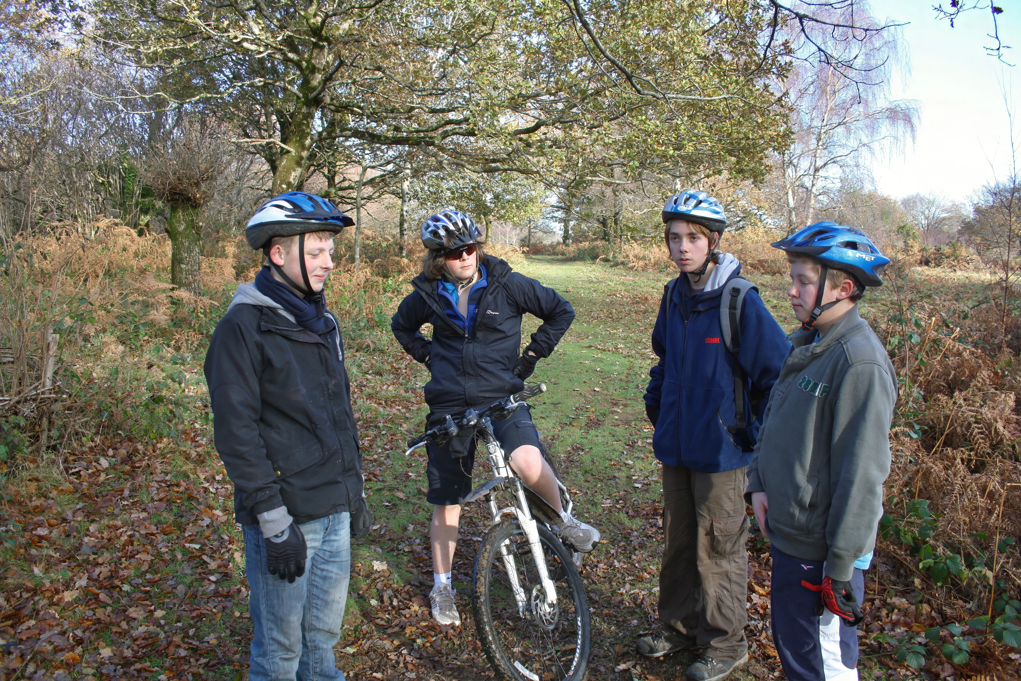 Callum, Ash, Jack and Matt in an upper Hembury Woods glade
