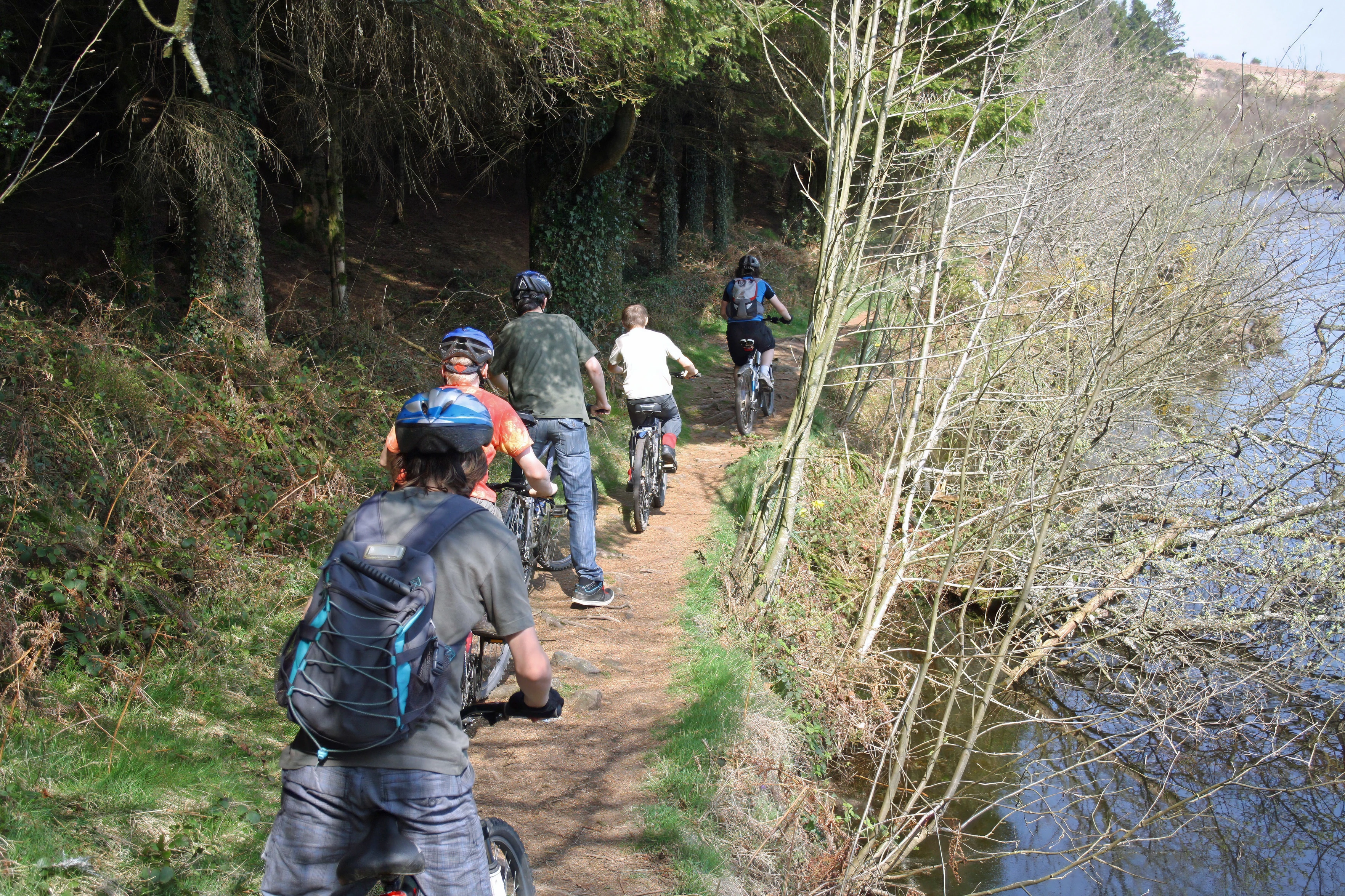 Riding the track around Venford Reservoir.