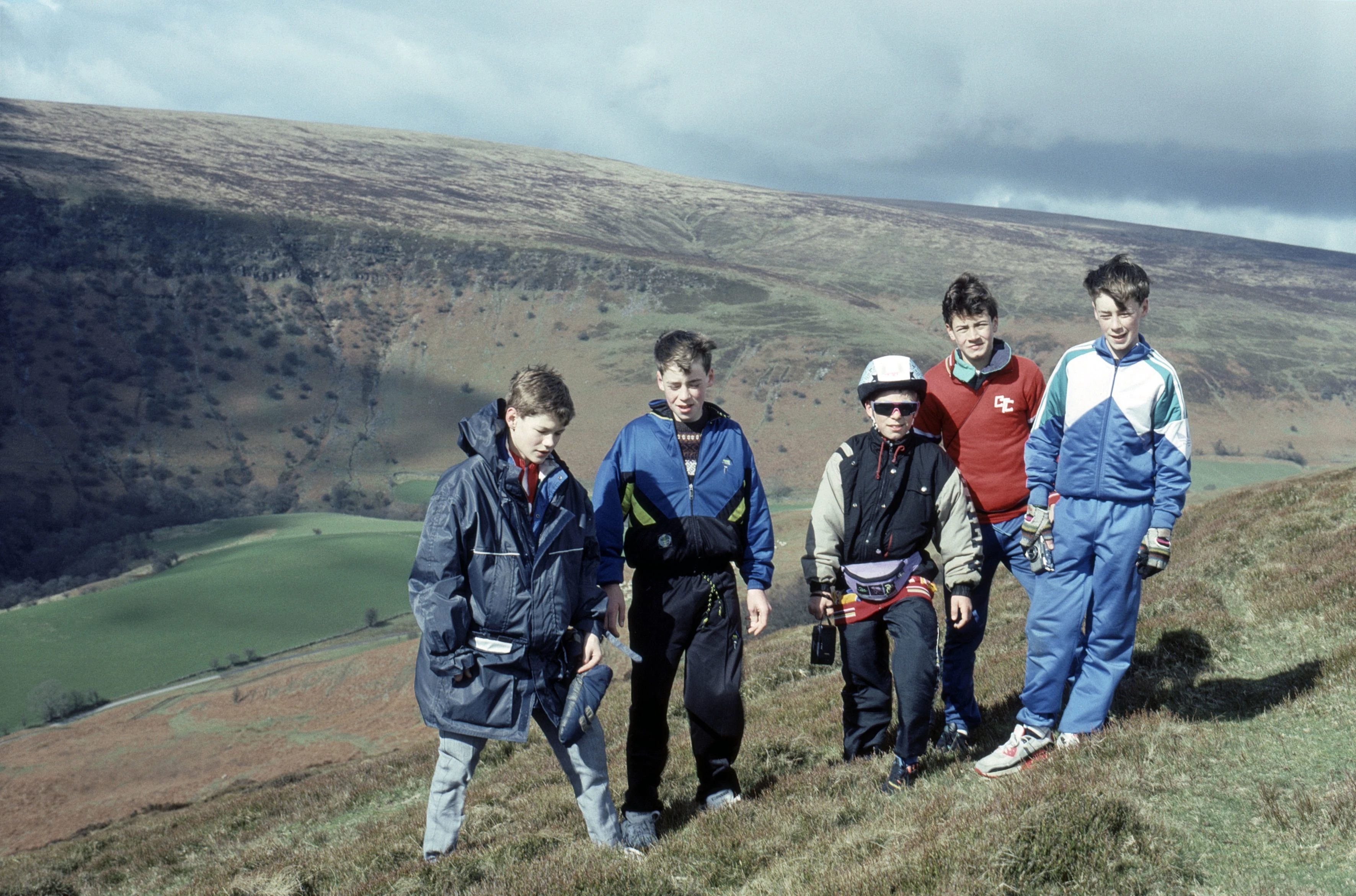 Tim, Matthew, Andrew, Nick and Thomas on the hills behind Capel-y-Ffin youth hostel