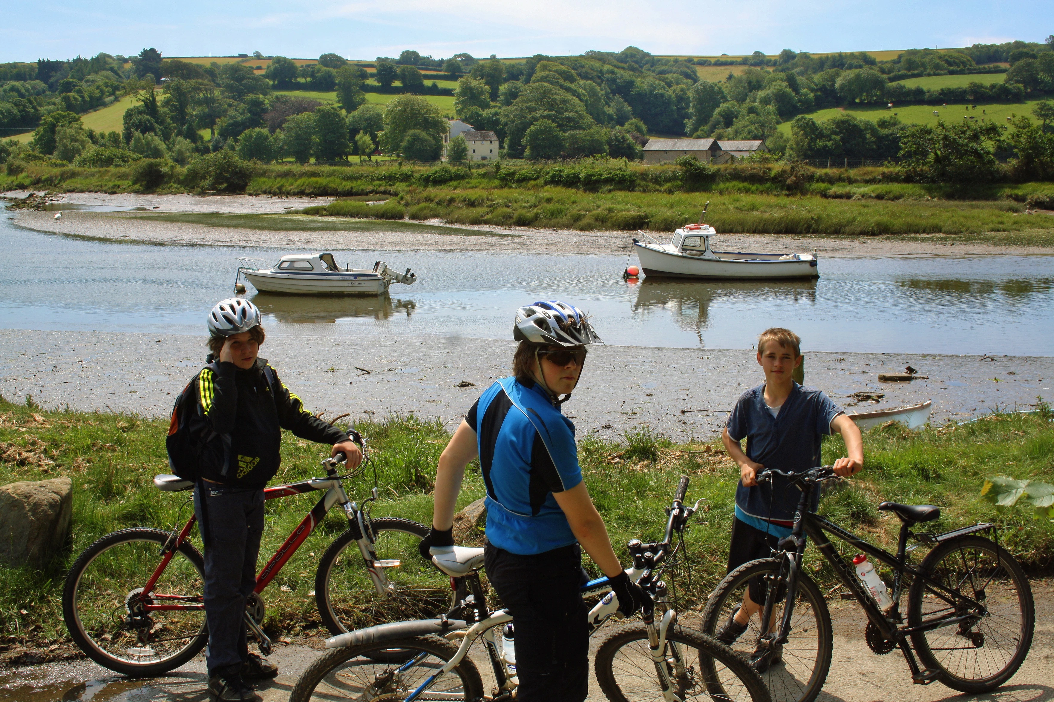 Callum, Ash and Connor on the Aveton Gifford tidal road
