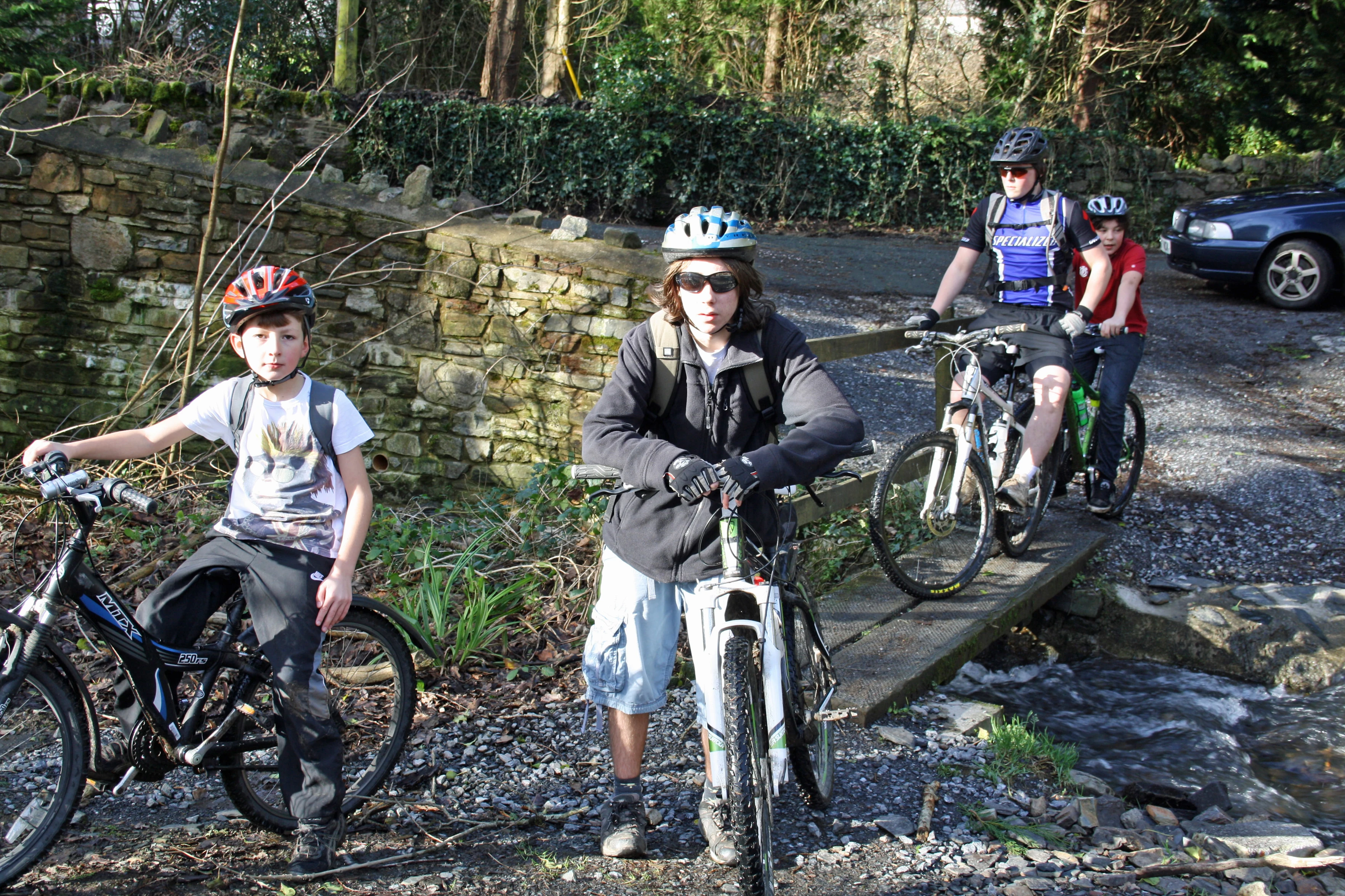 George, Jack, Ash and Lawrence at the start of the Belford Mill woodland track