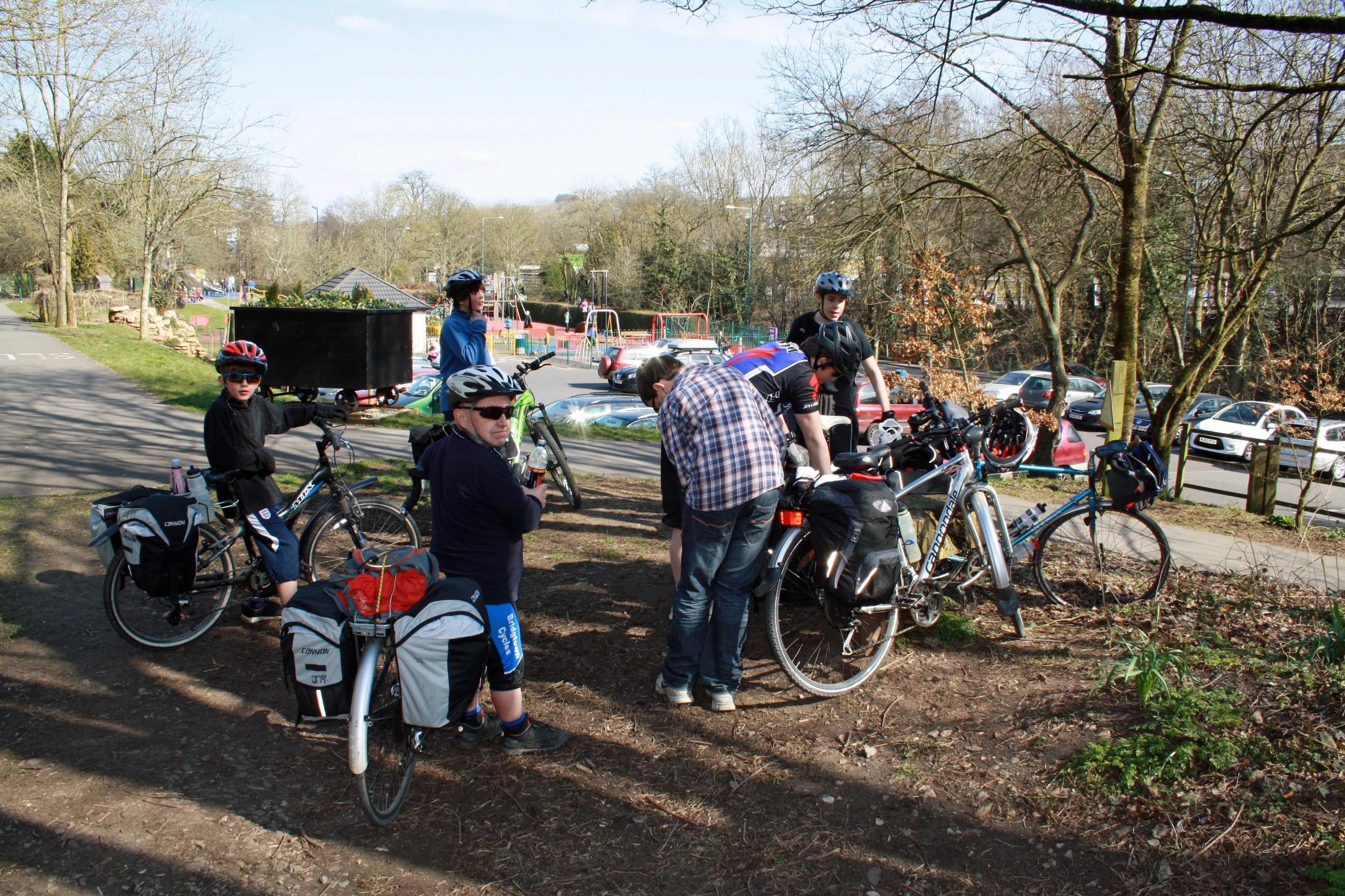 Leaving Tom Huyton Play Park, Radstock, after a late lunch, 16.3 miles in