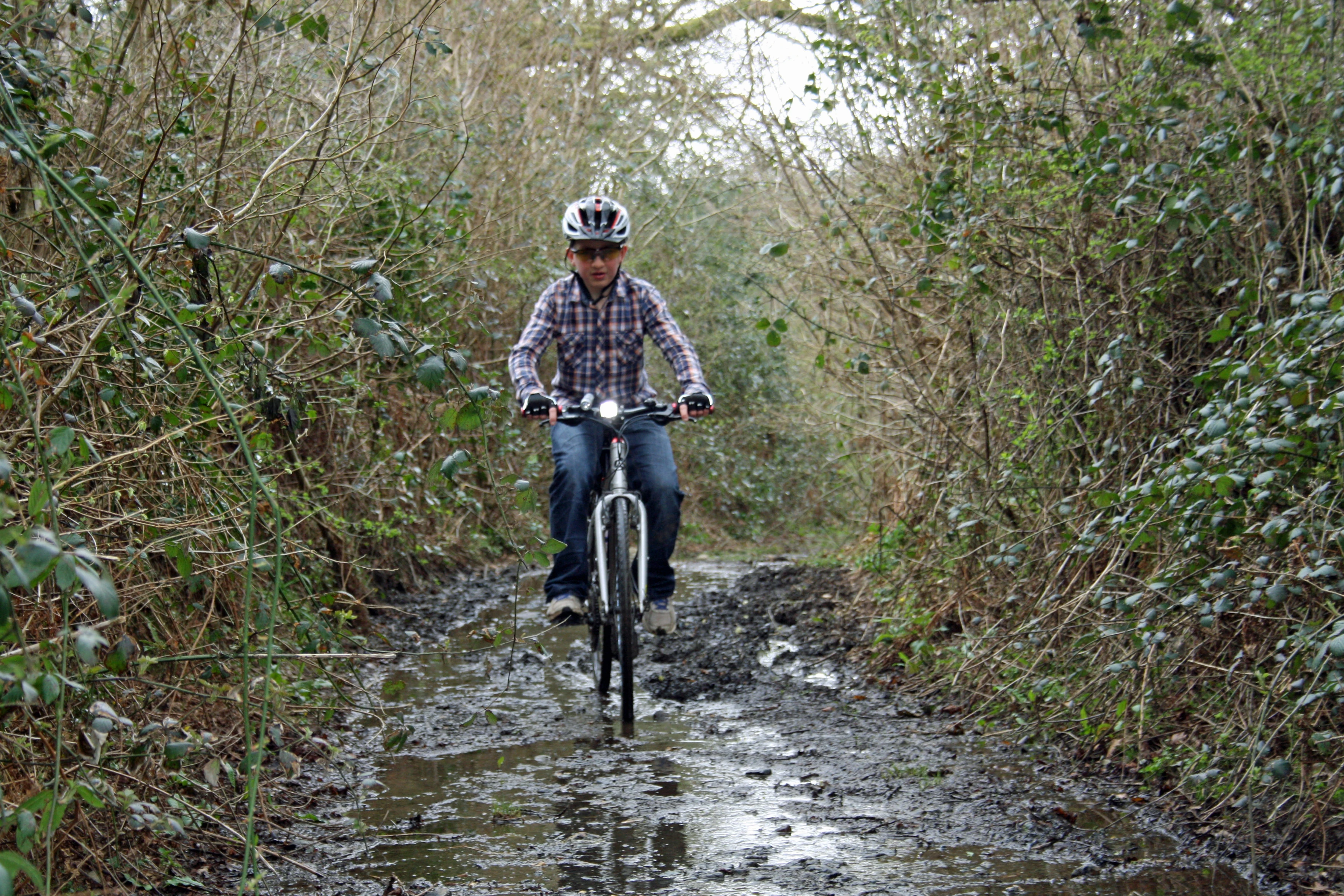 Will Rogers tackles the muddy upper reaches of the Lower Hembury track.