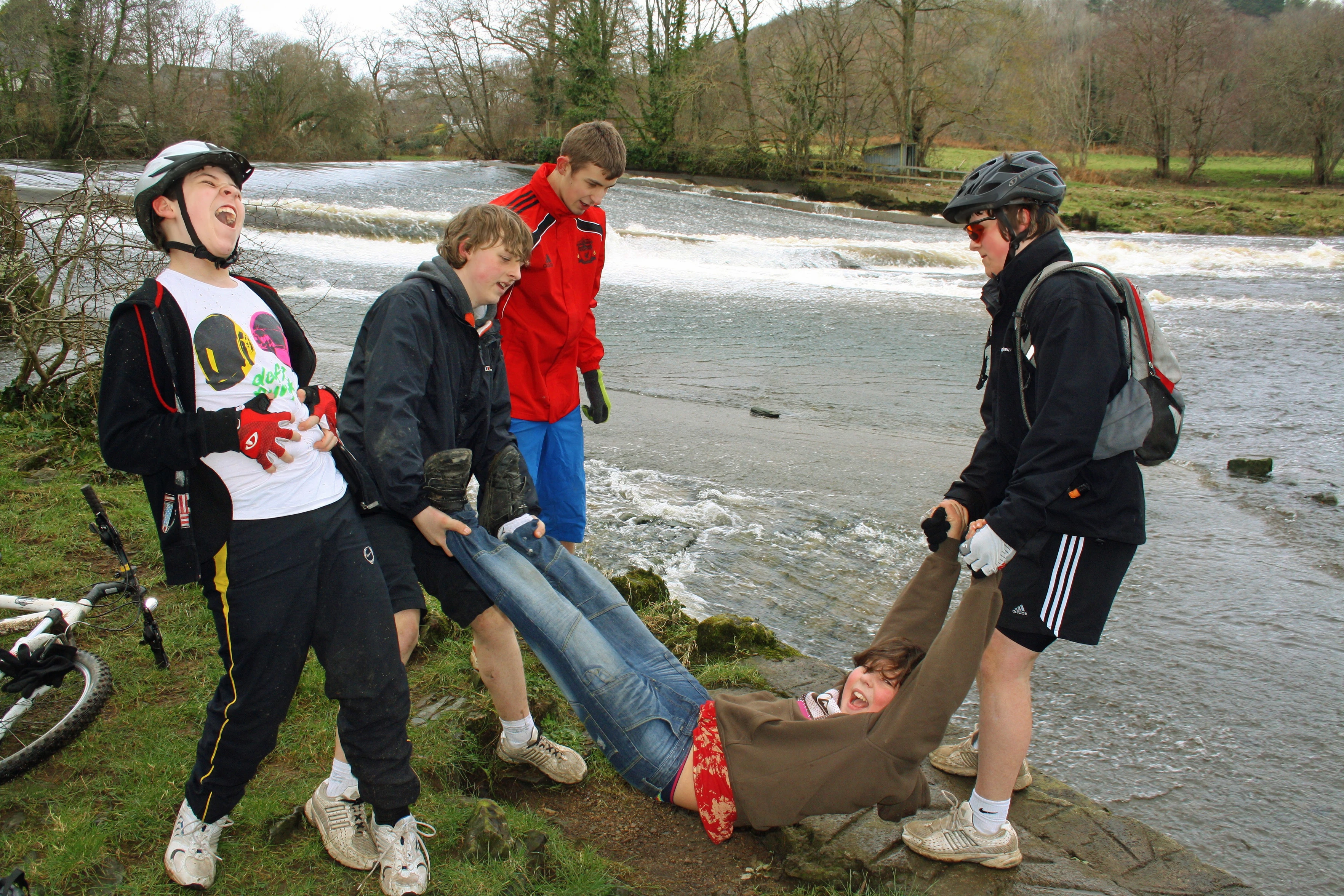 Callum O’B, Callum F, Jerry, Lawrence and Ash at Totnes weir.