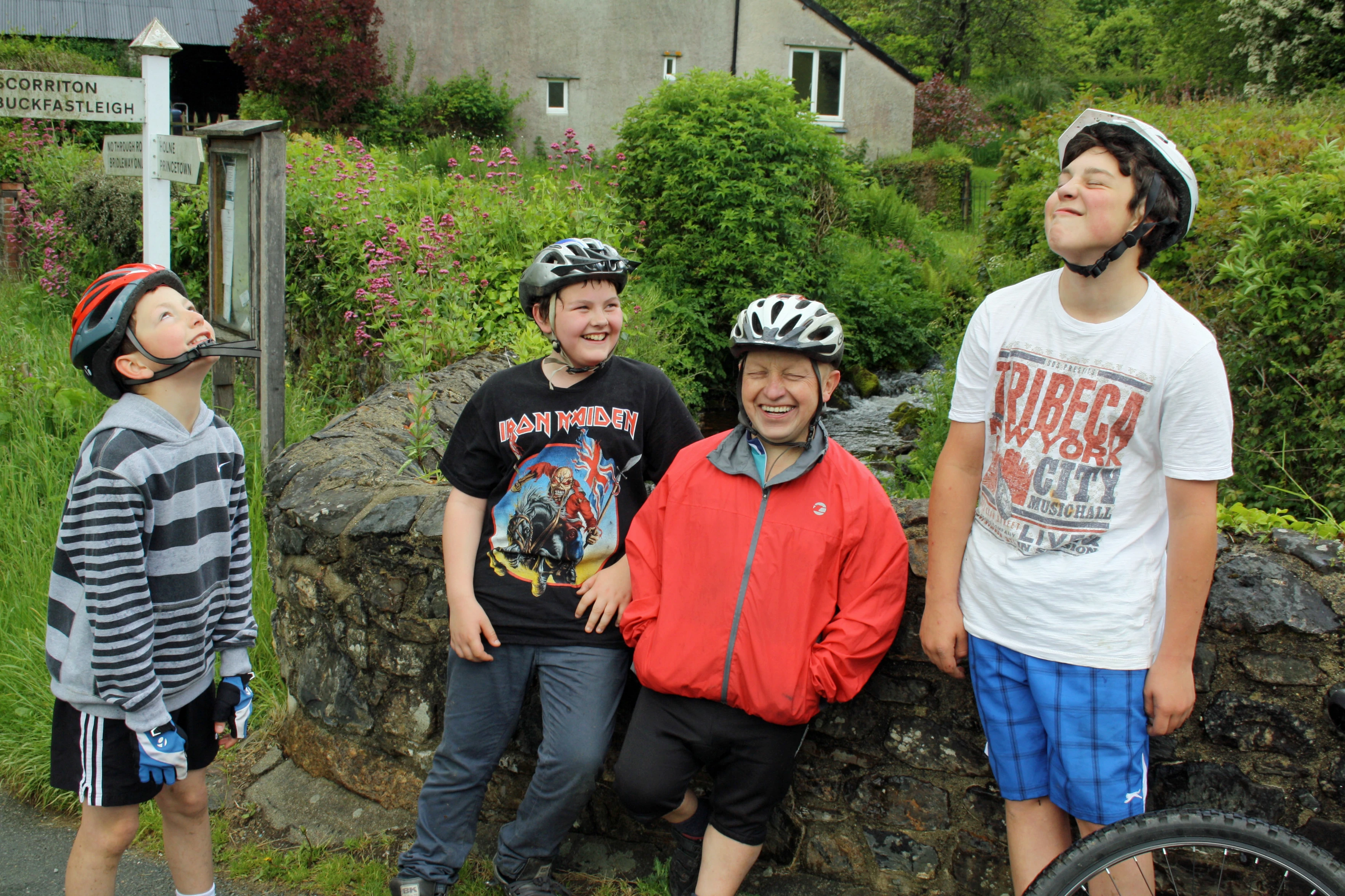 George, Dillan, John and Lawrence on the scenic route through Michelcombe.