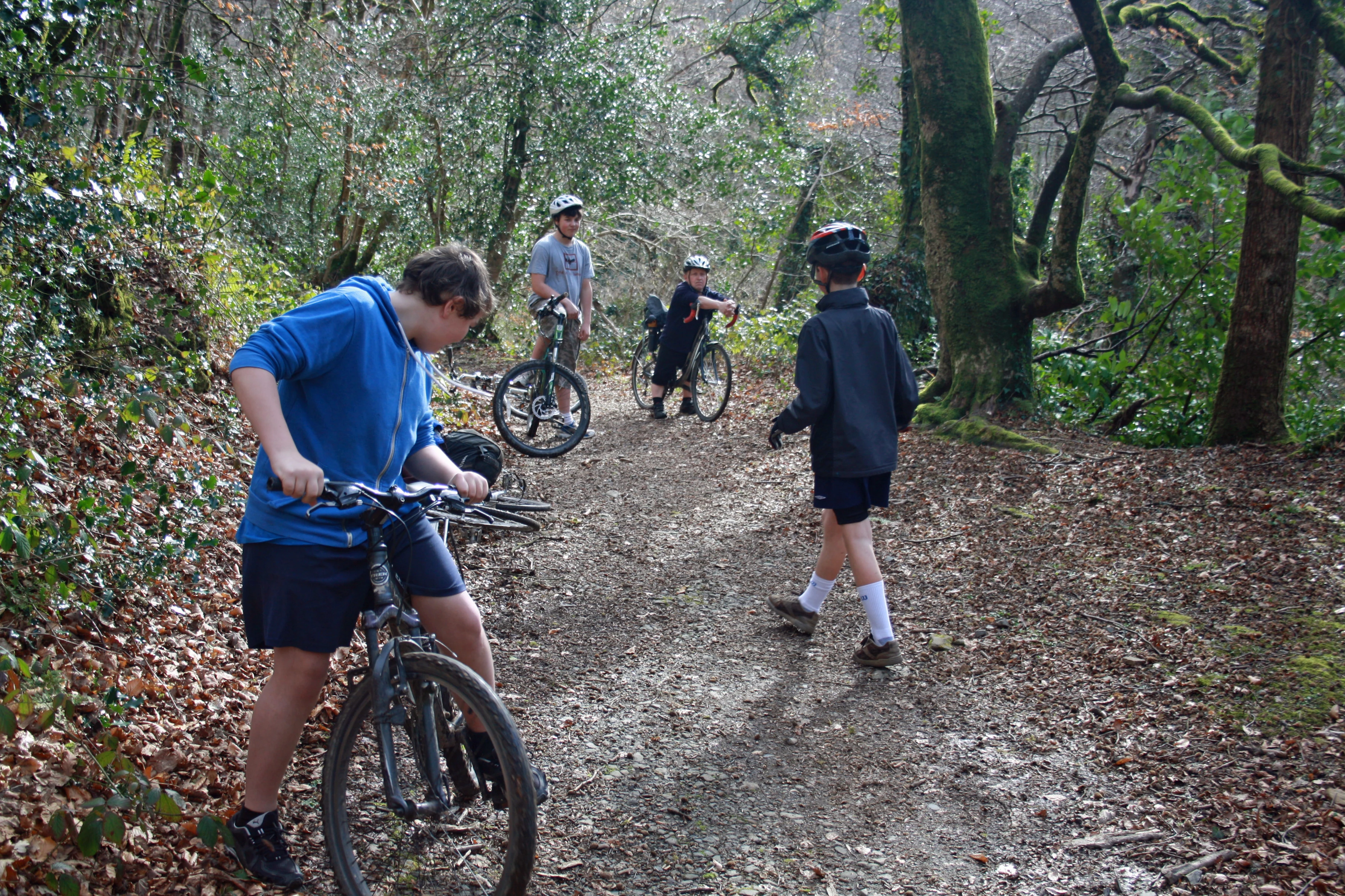 Dillan, Lawrence, John and George on Lower Hembury Track