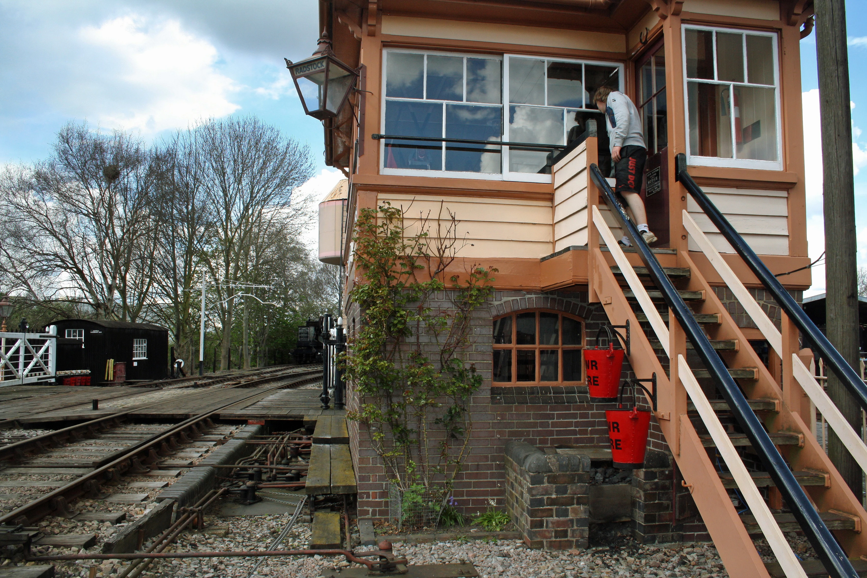 Callum Freeman inspects the signal box at Didcot Railway Centre.