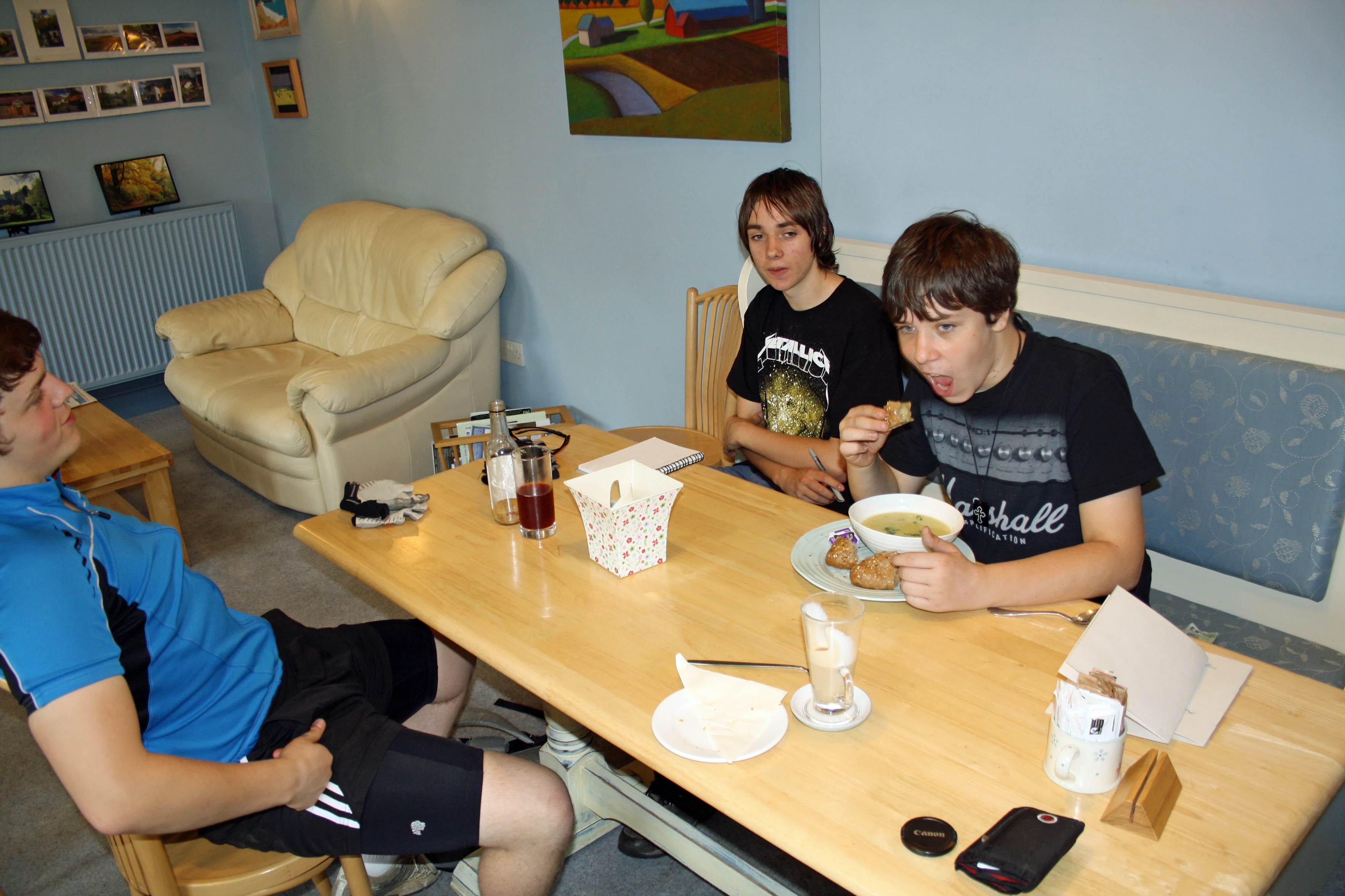 Callum loves his soup at the Primrose Café, Lustleigh.