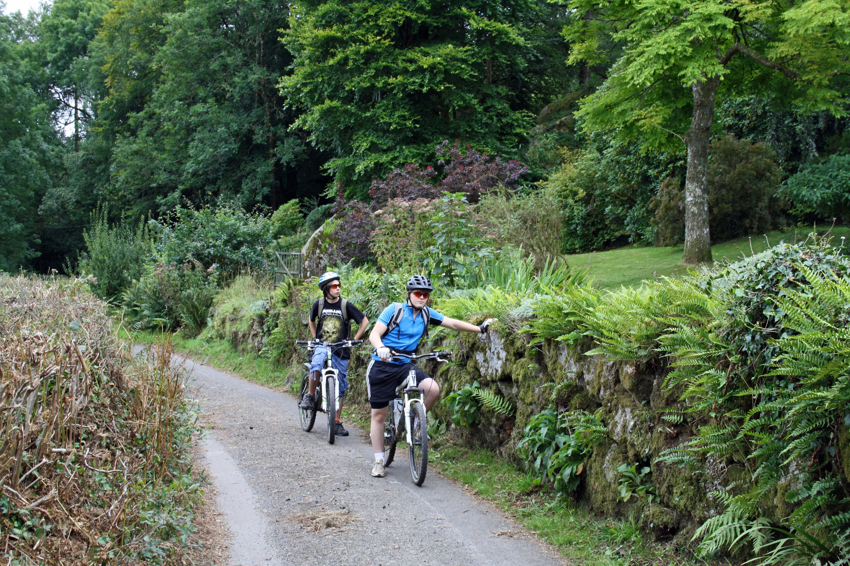 Jack and Ash on the lane up to Lustleigh Cleave.
