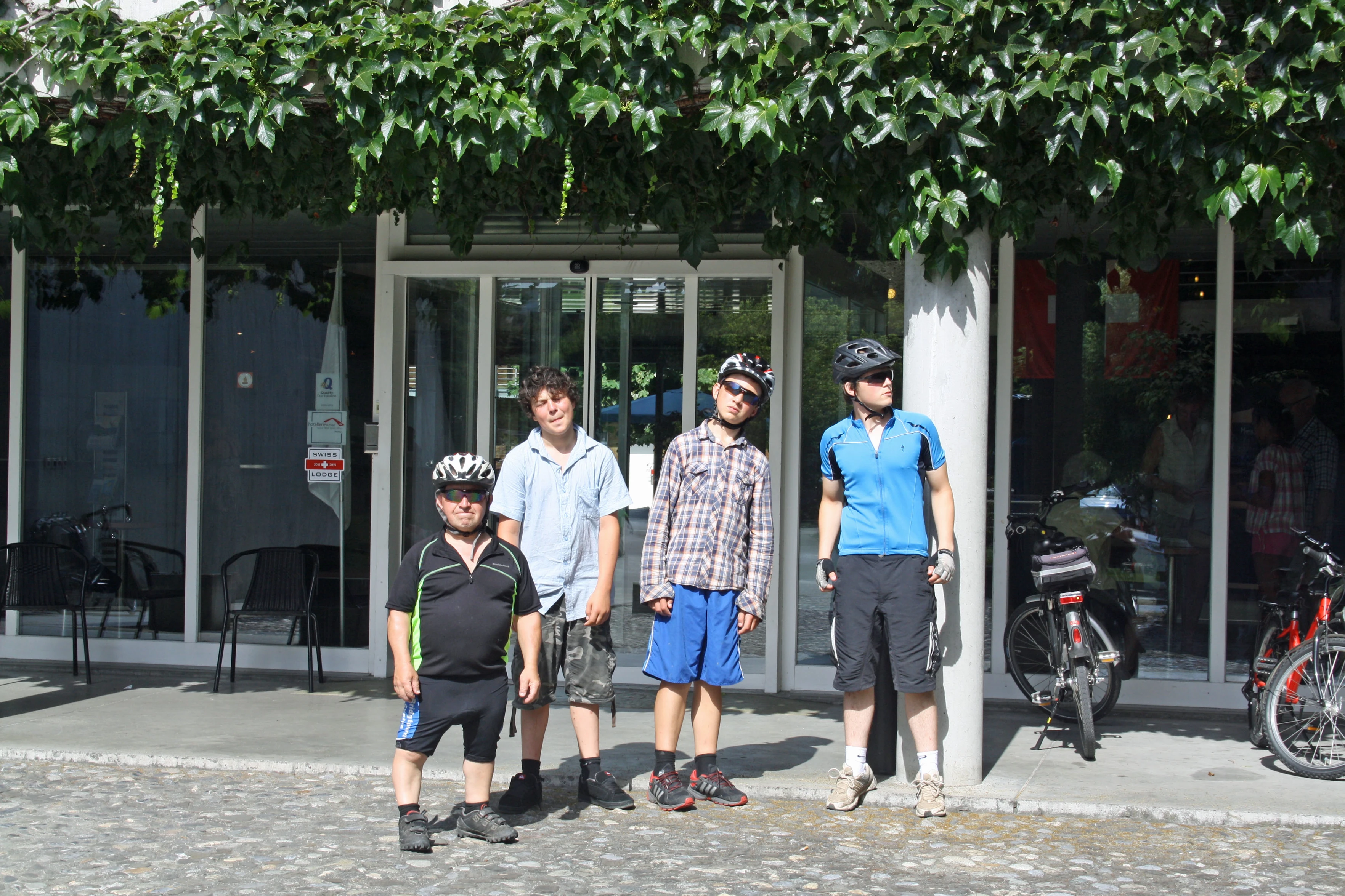 Group photo outside Lausanne Youth Hostel after our very leisurely morning.