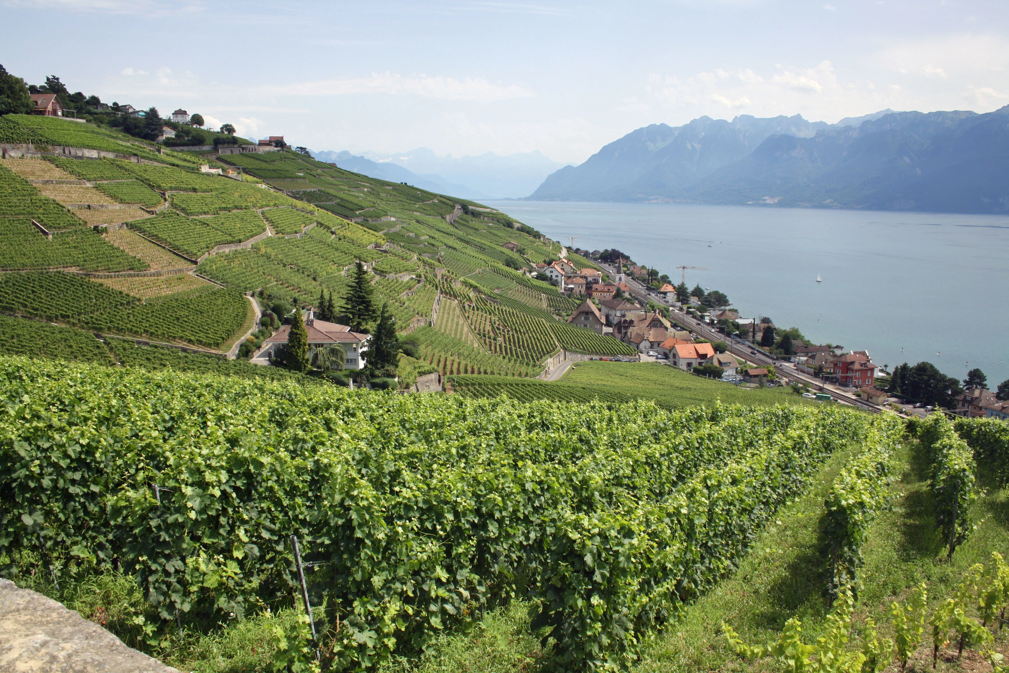View over Villette and Lake Geneva from Route de la Petite Corniche, Lutry.