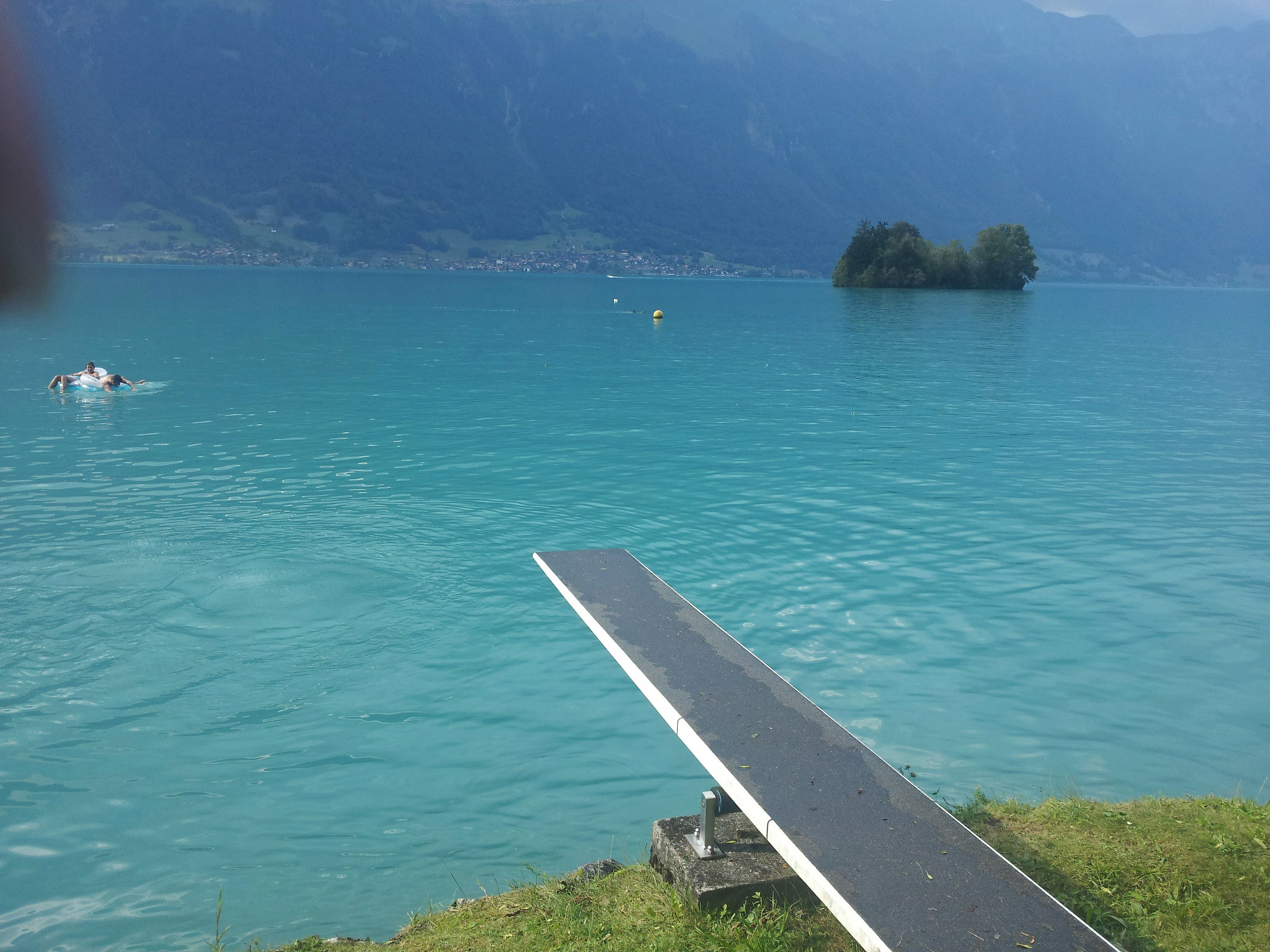 The Iseltwald Lido diving board on Lake Brienz - so much fun today