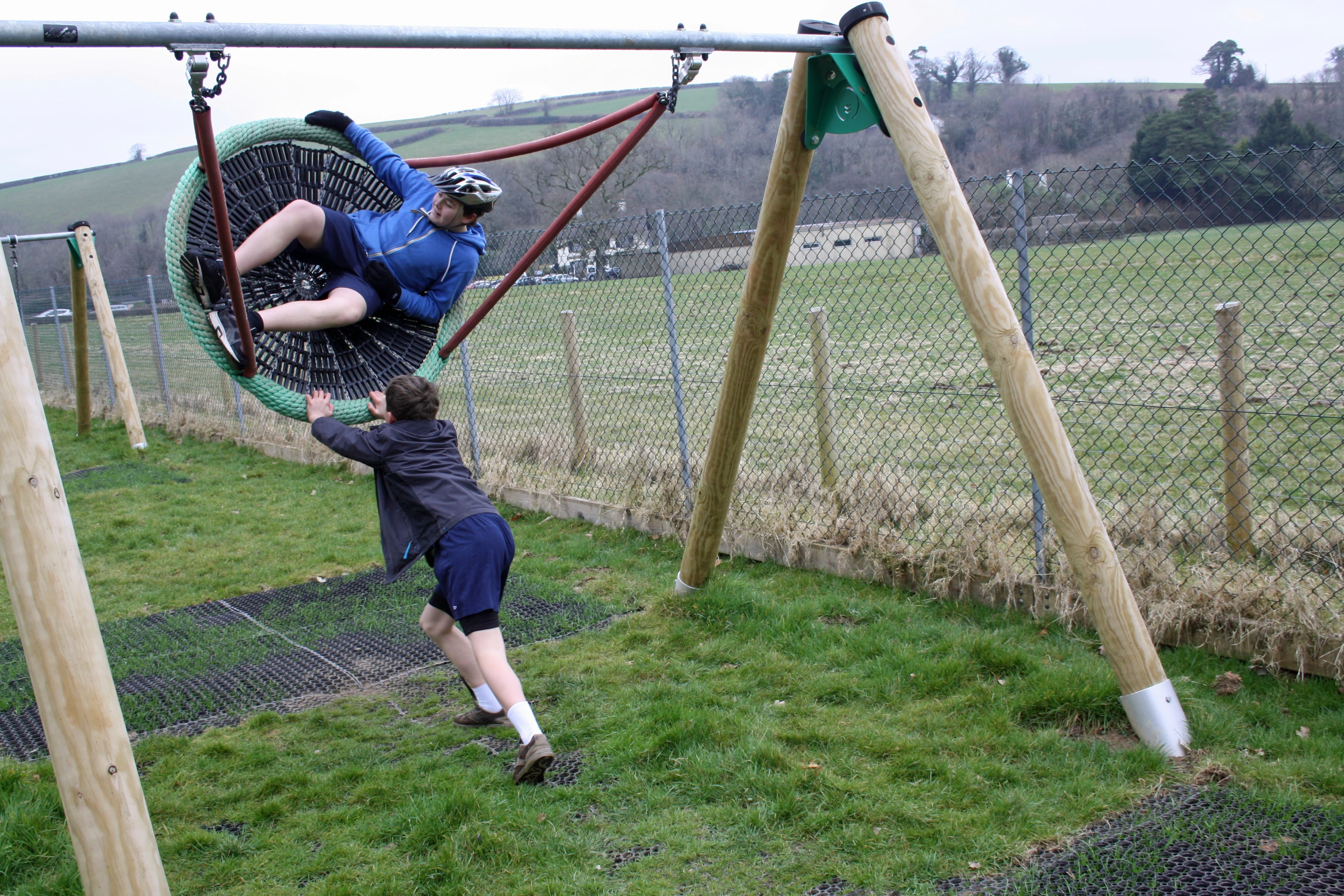 Dillan and George methodically test the play park kit.