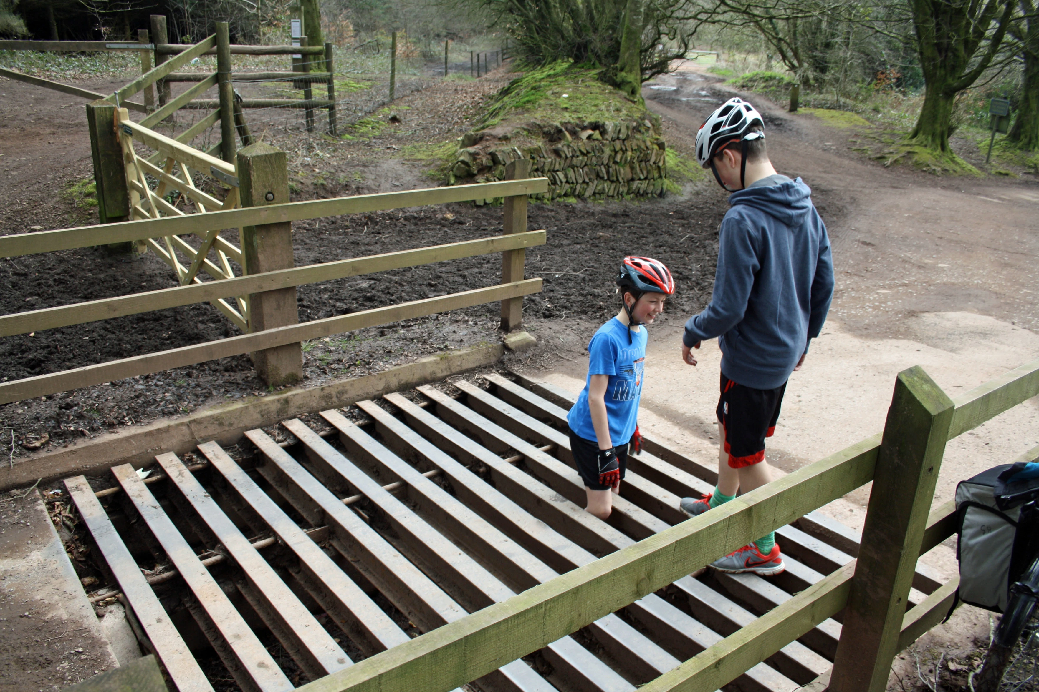 George gets caught in the cattle grid at Triscombe Park Gate.